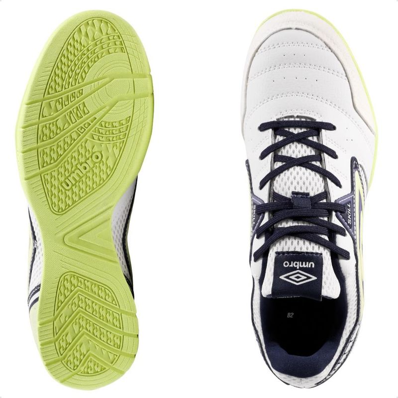 Chuteira Futsal Umbro Skill Unissex. Este é um produto original Umbro com garantia, vendido pela B2 Online.A Chuteira Futsal Umbro Skill Unissex é ideal para quem busca conforto e performance dentro de quadra. Seu design moderno alia suporte técnico e toque refinado, atendendo desde jogadores casuais até os mais dedicados.O cabedal apresenta material laminado com textura, reforçado com peças estratégicas sobrepostas, costuras nas linhas de flexão e serigrafia de alta frequência — garantindo acabamento sofisticado e suporte preciso.O colarinho e a lingueta em mesh promovem excelente ventilação e adaptam-se confortavelmente ao formato dos pés.A palmilha interna em EVA com tecnologia X‑Comfort proporciona amortecimento e maciez a cada passada, reduzindo fadiga durante treinos e partidas.O solado de borracha foi projetado para ambientes indoor, com superfície antiderrapante que garante aderência segura e estabilidade nos movimentos. Além disso, a costura reforçada na parte frontal amplia a robustez nas jogadas de impacto.Com visual clean e versátil, combina facilmente com uniformes e estilos distintos, sendo a escolha perfeita para partidas e treinos intensos.Garanta já a sua Chuteira Futsal Umbro Skill Unissex e eleve seu desempenho com conforto e autenticidade!• Gênero: Unissex• Colarinho e lingueta em mesh: respiração e adaptação ao pé• Palmilha EVA X‑Comfort: amortecimento e leveza• Solado de borracha indoor: tração eficiente• Design moderno e funcional: ótimo para quadras• Produto NacionalFoto do produto reflete com precisão a cor real. Eventuais edições visam aproximar ao máximo a imagem original.Você pode solicitar a garantia do produto em até 30 dias. Sem custos para devolução.Compra garantida. Caso queira devolver, pode solicitar reembolso em até 7 dias após o recebimento.