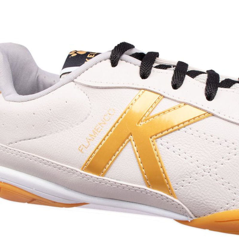 Chuteira Kelme Flamenco Futsal Dourada – Precisão e Conforto Eleve seu desempenho nas quadras com a Chuteira Kelme Flamenco Futsal Dourada. Desenvolvida para jogadores que buscam conforto e eficiência, ela conta com cabedal sintético de alta resistência, proporcionando suporte e durabilidade. O forro acolchoado e a palmilha em EVA garantem um ajuste confortável e macio, reduzindo impactos e aumentando a estabilidade durante o jogo. Seu solado de borracha antiderrapante oferece máxima tração, precisão nos movimentos e segurança em cada jogada. Dicas de Uso: Utilize meias adequadas para melhor ajuste e conforto.Após o uso, limpe com um pano úmido para conservar o material.Evite exposição prolongada ao sol para manter a durabilidade. Ficha Técnica: Nome: Chuteira Kelme Flamenco Futsal DouradaOrigem: NacionalGênero: MasculinoMaterial do Cabedal: Sintético resistenteMaterial Interno: Tecido acolchoadoCor: Branco com detalhes douradosIndicado para: FutsalSolado: Borracha antiderrapantePalmilha: EVA macioPeso: 590g (referente ao par nº40) Garantia do Fabricante: Contra defeitos de fabricação Com um design moderno e detalhes em dourado, essa chuteira combina estilo e desempenho para quem busca o melhor em quadra. Garanta já a sua Chuteira Kelme Flamenco e jogue com mais precisão e segurança! Características Gerais do Produto: • Gênero: Masculino • Cor: Branco • Indicado para: Futsal Garantia: • 30 dias após o recebimento do produto