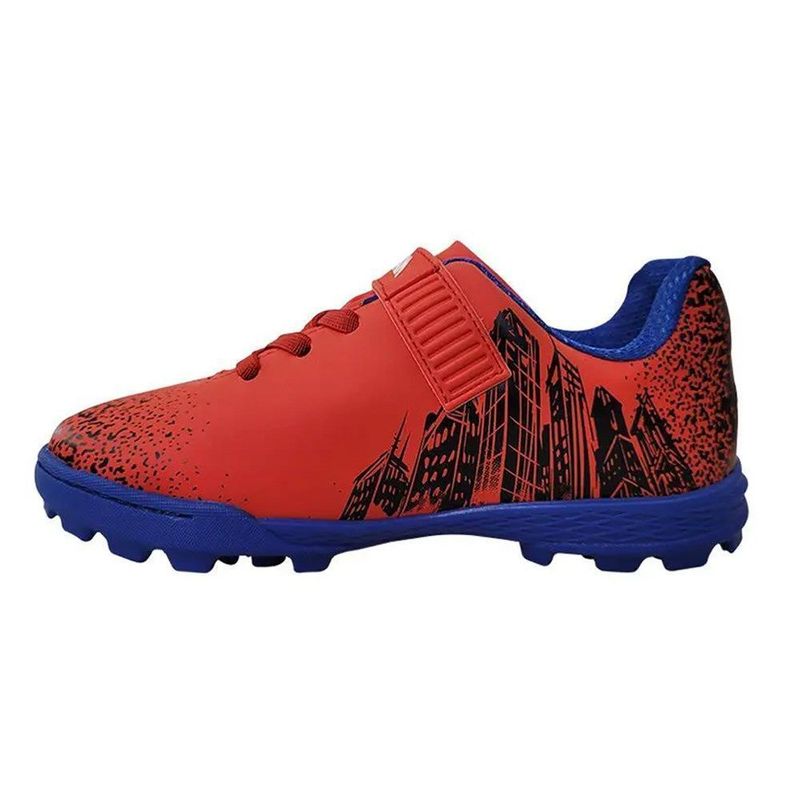 :A Chuteira Society Dray Marvel Homem-Aranha Infantil é ideal para os futuros craques do futebol. Confeccionada em material sintético, a peça é leve e resistente. Conta com solado em borracha que traz micro travas, ideais para campos Society, além disso, possui ponto de giro, proporcionando mais segurança nas mudanças rápidas de direção. Seu sistema de fechamento por tira de contato e um cadarço elástico, garantem o ajuste ideal aos pés. Oferece também palmilhas removíveis, tornando mais fácil a higienização. O design remete ao herói da Marvel Homem-Aranha, sendo composto pelas clássicas cores vermelho e azul. Traz também, detalhes em branco e preto. Referência: 4302.