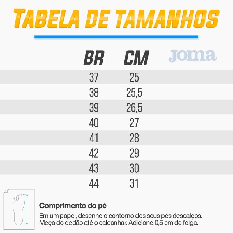 Chuteira Society Joma Mundial MasculinaEste é um produto original Joma com garantia vendido pela B2 Online.Vá pra cima dos defensores com a Chuteira Society Joma Mundial Unissex! Perfeita para aqueles que gostam de rabiscar dentro das quatro linhas,essa chuteira society apresenta cabedal em material confortável e resistente a abrasão.O solado em borracha garante estabilidade enquanto você pensa no próximo drible.Trava: Trava Fixa• Gênero: Masculino• Indicado para Society• Modelo com cadarço para melhor ajuste no pé.• Chuteira feita de material siintético• Solado de borracha antiderrapante para prorcionar melhor tração e estabilidade• Palmilha macia• Solado macio e confortável• ImportadoFoto do produto condiz com a realidade. Não existe variação significativa de cor entre o produto real e a foto. Edição realizada em programa gráfico para aproximar ao máximo a foto à cor real do produto.Você pode solicitar a troca em até 30 dias. Sem custos para devolução.Compra garantida. Caso queira devolver você pode solicitar o reembolso do valor pago em até 7 dias a contar do recebimento.