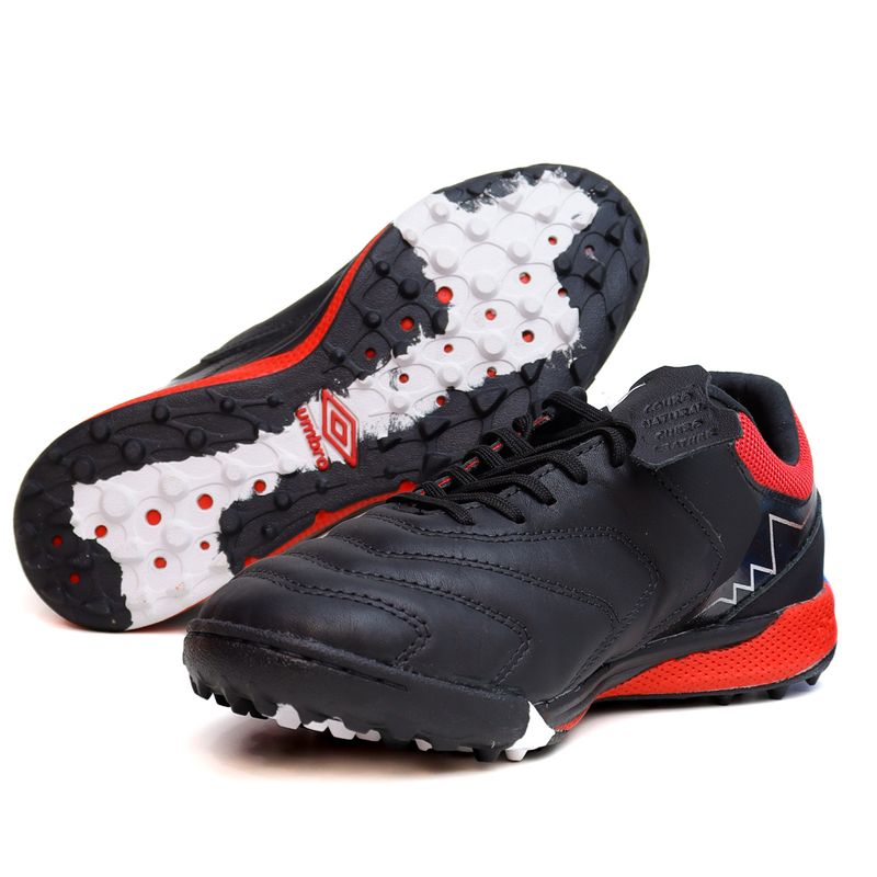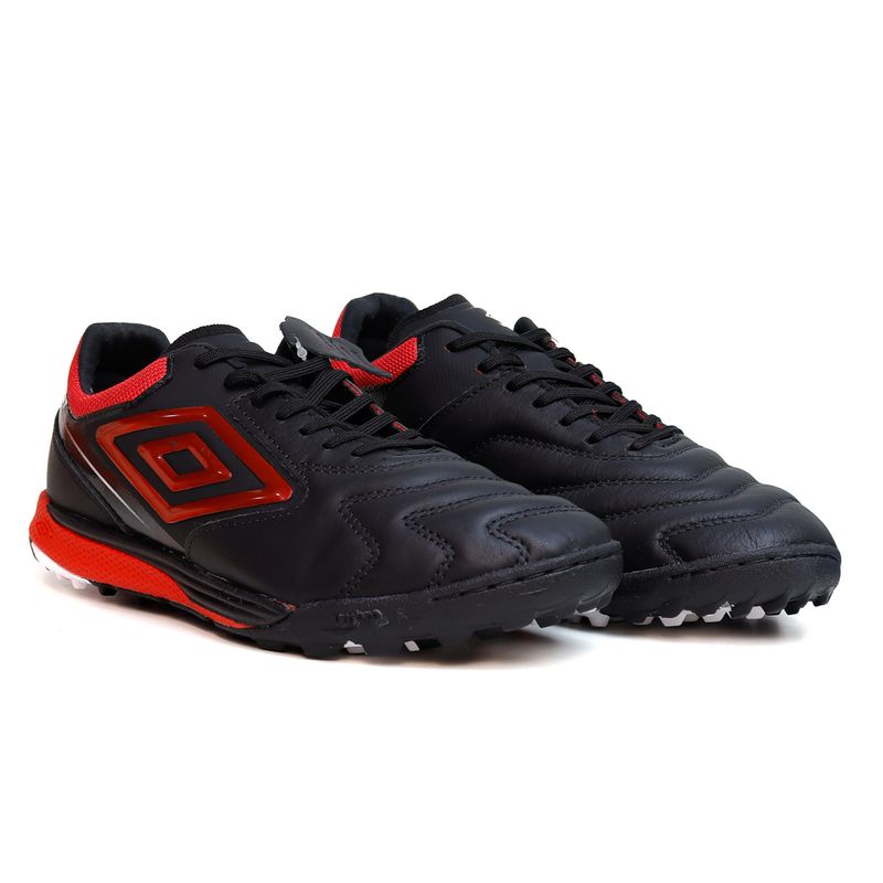 Descrição: A Chuteira Society Adamant Master Class Pro é indicada para quadras de society de gramado sintético ou natural com corte baixo e segue um design clássico de modelos profissionais. Com couro de alta qualidade e calce que se ajusta perfeitamente ao pé, a chuteira complementa a família Adamant com inovações e atributos que melhoram a sensibilidade no toque com a bola para você dominar e controlar o jogo. Cabedal assimétrico confeccionado em couro nobre tipo Napa Premier na parte frontal e no talão, com dupla costura de reforço nas linhas de flexão nas áreas de maior contato com a bola no momento do chute. Possui lingueta com aplique fusionado, Diamante Umbro com acabamento metalizado, pontos vazados no solado de borracha para diminuir o peso e palmilha interna em EVA conformado forrada com tecido estampado. O solado de society HG, com sistema de travas mistas (cônicas e triangulares), é composto por entressola BUMP texturizada (tecnologia com novo composto que oferece amortecimento e alto retorno de energia) de ponta a ponta com soleta em borracha antiderrapante, grafismo bicolor personalizado e costura de reforço frontal para maior durabilidade. Garantia contra defeito de fabricação.