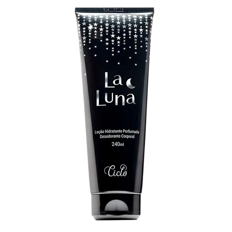 Ciclo Cosméticos La Luna - Loção Hidratante Corporal 240ml 240mlA loção hidratante corporal Ciclo La Luna hidrata profundamente, perfuma, deixa o seu corpo extremamente macio e com toque suave por mais tempo. Além disso, é perfeito para todos os tipos de pele e ideal para a mulher misteriosa, envolvente, marcante e sedutora.Ciclo La Luna - Loção Hidratante Corporal possui uma fórmula com fragrância gourmand afrodisíaca marcante e sedutora, de rápida absorção.Notas Olfativas:Nota de Cabeça: Pêra, Bergamota e Tangerina.Nota de Coração: Rosa, Orquídea, Baunilha, Maracujá e MorangoNota de Base: Baunilha, Lichia, Caramelo, Patchouli e Praline.Conselho de Aplicação:Com a pele limpa e seca, aplique e faça movimentos circulares, massageando o copo, até a absorção total.Um excelente momento para aplicar loções hidratantes é após o banho, pois facilita a absorção dos ativos da fórmula.Produto não testado em animais.Contém:Ciclo La Luna - Loção Hidratante Corporal 240mlTipos de Pele - Pele de Todos os Tipos