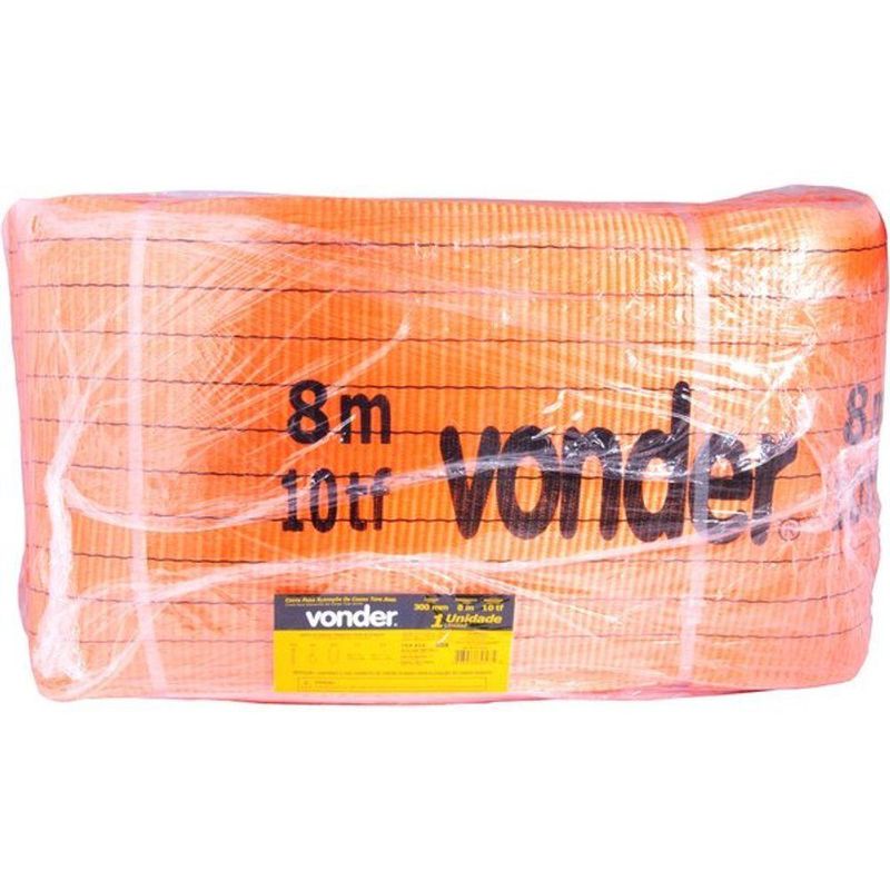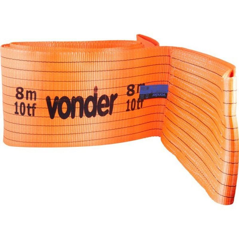 Cinta Elevação De Carga Vonder 7:1 8 Metros 10 ToneladasRef. Fornecedor: 8014810300Marca: VonderConteúdo Embalagem:1 Cinta para elevação de cargasAplicações e dicas de uso:Indicada para elevação e movimentação de cargas. Nunca utilizar para e elevação de pessoas ou animais.Destaques e diferenciais:Possui excelente resistência, flexibilidade e facilidade no manuseio, reduzindo o esforço durante a operação, além de oferecer menor risco ou danos na movimentação de cargas. Cinta plana de elevação de carga tipo anel.Características Técnicas:Carga de trabalho da cinta em elevação vertical/direta: 10,0 tf Comprimento total da cinta elevação de carga: 8,0 m Fator de da cinta de elevação de carga: 7:1 Largura da cinta: 300,0 mm Material da cinta: 100% Poliéster Norma de referência da cinta : ABNT NBR 15637-1 Produto: Cinta