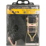 Cinta Para Amarração De Carga Com Catraca 4tx9,5m 50mm CarteConteúdo da embalagem1 Jogo de cinta para amarração de carga composto por: 1 cinta, 2 ganchos e 1 catracaAplicações e dicas de usoIndicada para amarrações de cargas. Não utilizar para elevação ou suspensão de cargas.Destaques e diferenciaisPossui gancho tipo J. Catraca e gancho fabricados em aço bicromatizado, proporcionando boa resistência à oxidação.DETALHES TÉCNICOSCarga de trabalho da cinta em amarração enlaçada:4,0 tCarga de trabalho da cinta em amarração direta:2,0 tCarga de ruptura da cinta para amarração de carga:8,0 toneladasFator de segurança da cinta para amarração de carga:2:1Largura da cinta:50,0 mmComprimento total do conjunto da cinta para amarração de carga:9,5 mMaterial da cinta:PoliésterMaterial dos acessórios da cinta para amarração de carga:Aço bicromatizadoNorma de referência da cinta:EN 12195-2 e ABNT NBR 15883-2Cor da cinta:Preta Produto: Cinta