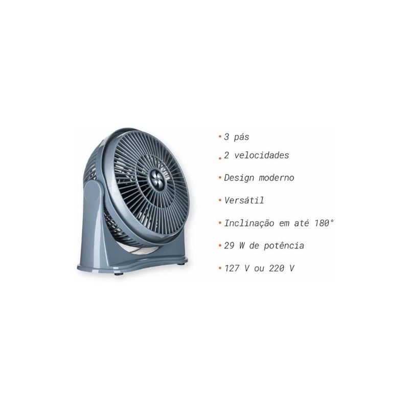 INTENS INCLUSOS:1 Circulador de Ar 25CM Cinza/PrataManual de InstruçõesDESCRIÇÃO:Fabricante: ventimaisCor: Cinza/PrataVelocidades: 2Comprimento:29cmAltura: 29Largura: 12Informações complementaresTipo: Circulador de ArINFORMAÇÕES TECNICAS:> Motor forte: Maior fluxo de vento com mais economia.> Hélice 3: Design e aerodinâmica para alta ventilação.> Duas velocidades: Controle de velocidade.> Articulação vertical: Ajustada de acordo com a necessidade.> 3 em 1: chão, mesa e parede.> Composição: Metal / Plástico / CobreDIFERENCIAIS:- Resistência e durabilidade.- Eficiência e praticidade.- Excelente desempenho.- Fácil instalação.- Ótimo custo-benefício.- Design moderno e inovador.- Excelente acabamento na cor preta.- Compacto e fácil de transportar.- Velocidade ajustável.- Cordão elétrico com excelente alcance.- Super econômico e silencioso.- Dispõe de alça para transporte.- Corpo reclinável para direcionamento do ar.- Material de qualidade.Garantia: 12 meses.