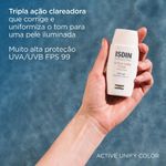 Isdin Foto Ultra Active Unify Color Fps 99 50 ml O Isdin Foto Ultra Active Unify Color Fps 99 foi desenvolvido para fazer o clareamento é uniformizar o tom da pele, ajudando a reduzir as alterações pigmentares causada pelo sol. Além de regular a produção de melanina graças ao complexo DP3-Unify, que atua nas principais fases do melanogênese. Modo de usar:Aplicar pela manhã e ao meio-dia. Reaplicar a cada duas horas e tão frequentemente quanto seja necessário.