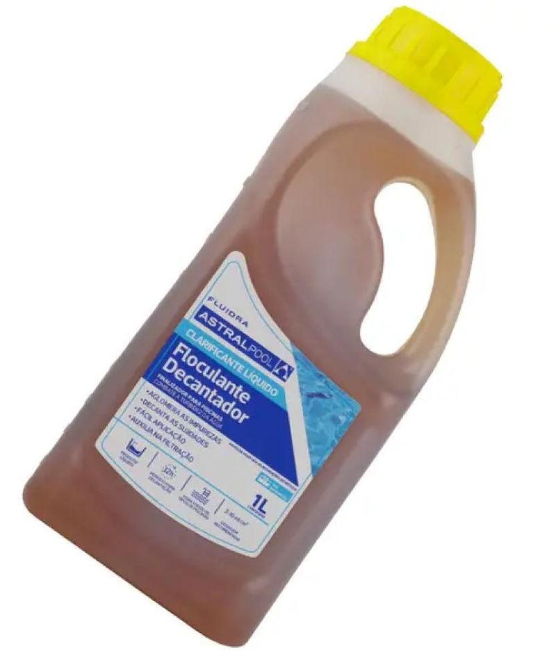 Clarificante Líquido Fluidra Astralpool 1 LitroFloculante DecantadorO Clarificante Líquido Fluidra Astralpool, com volume de 1 litro, é uma solução eficaz para tratar problemas de turvação e esverdeamento indesejáveis na água da sua piscina. Sua função principal é aglomerar partículas em suspensão que podem causar problemas de furbidez, proporcionando uma filtração mais ágil e eficiente. Esse processo resulta em uma água cristalina, livre de impurezas visíveis. Uma característica notável é sua habilidade de realizar esses aprimoramentos sem afetar o pH da água. Além disso, ele se destaca ao eliminar borras, filmes de oleosidade e matéria orgânica não dissolvida da superfície da piscina.Indicado para uso residencial.Instruções de Uso:Comece por verificar a alcalinidade total e o pH da água com o auxílio de uma fita teste. A alcalinidade total deve estar entre 100-120 ppm, e o pH ideal deve estar na faixa de 7,4 a 7,6.Antes de ativar a filtração, realize uma retrolavagem do filtro e assegure-se de que os materiais filtrantes (areia, cartucho, etc.) estejam em boas condições.Dilua o produto previamente em um recipiente plástico com água da própria piscina. Espalhe a mistura uniformemente sobre toda a superfície enquanto a filtração ou recirculação estão em funcionamento. Mantenha esse processo por 30 a 60 minutos para obter uma homogeneização completa.No caso de águas turvas ou muito turvas, permita que a água repouse por 8 a 12 horas após o tratamento de clarificação.Após o período de repouso, aspire a água no modo drenar e ajuste o nível da água conforme necessário. Lembre-se de que o tempo é um fator crucial para obter os melhores resultados. Se necessário, repita o processo seguindo sempre a dosagem recomendada. A piscina estará pronta para uso após a aspiração e a correção dos parâmetros. Agite bem antes de utilizar.Dosagem Recomendada:Manutenção da cristalinidade: 2 ml/m³Clarificação de águas turvas: 6 ml/m³Clarificação de águas muito turvas: 10 ml/m³Observações:Em piscinas públicas ou sujeitas a regulamentações sanitárias, é fundamental seguir a legislação aplicável.Composição: Solução à base de cloridróxido de alumínio.Princípio Ativo e Teor: Cloridróxido de alumínio.Funções do floculante decantadorAglomera as impurezas, decanta as sujidades, fácil aplicação e auxilia na filtração.