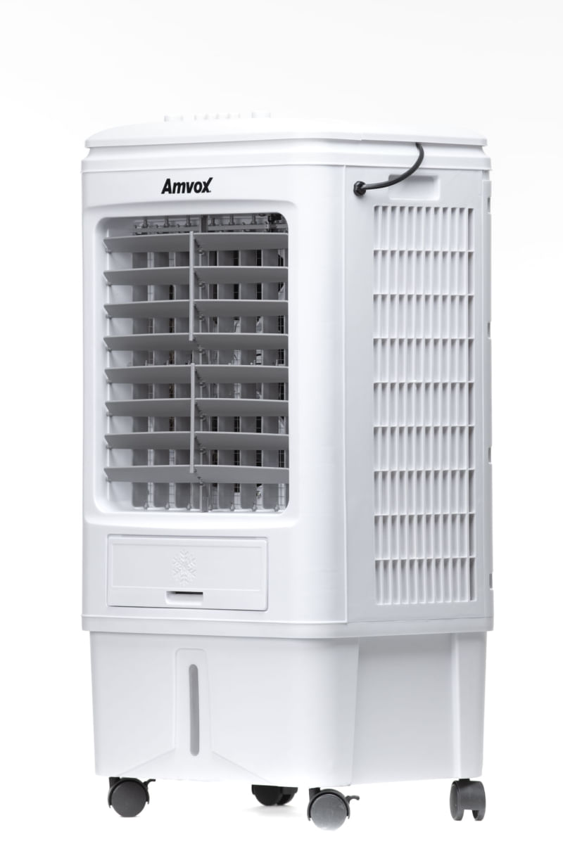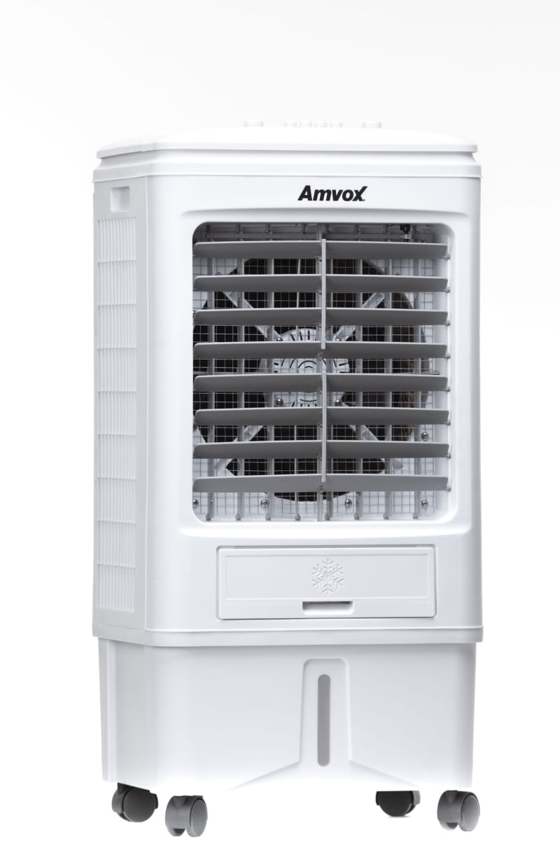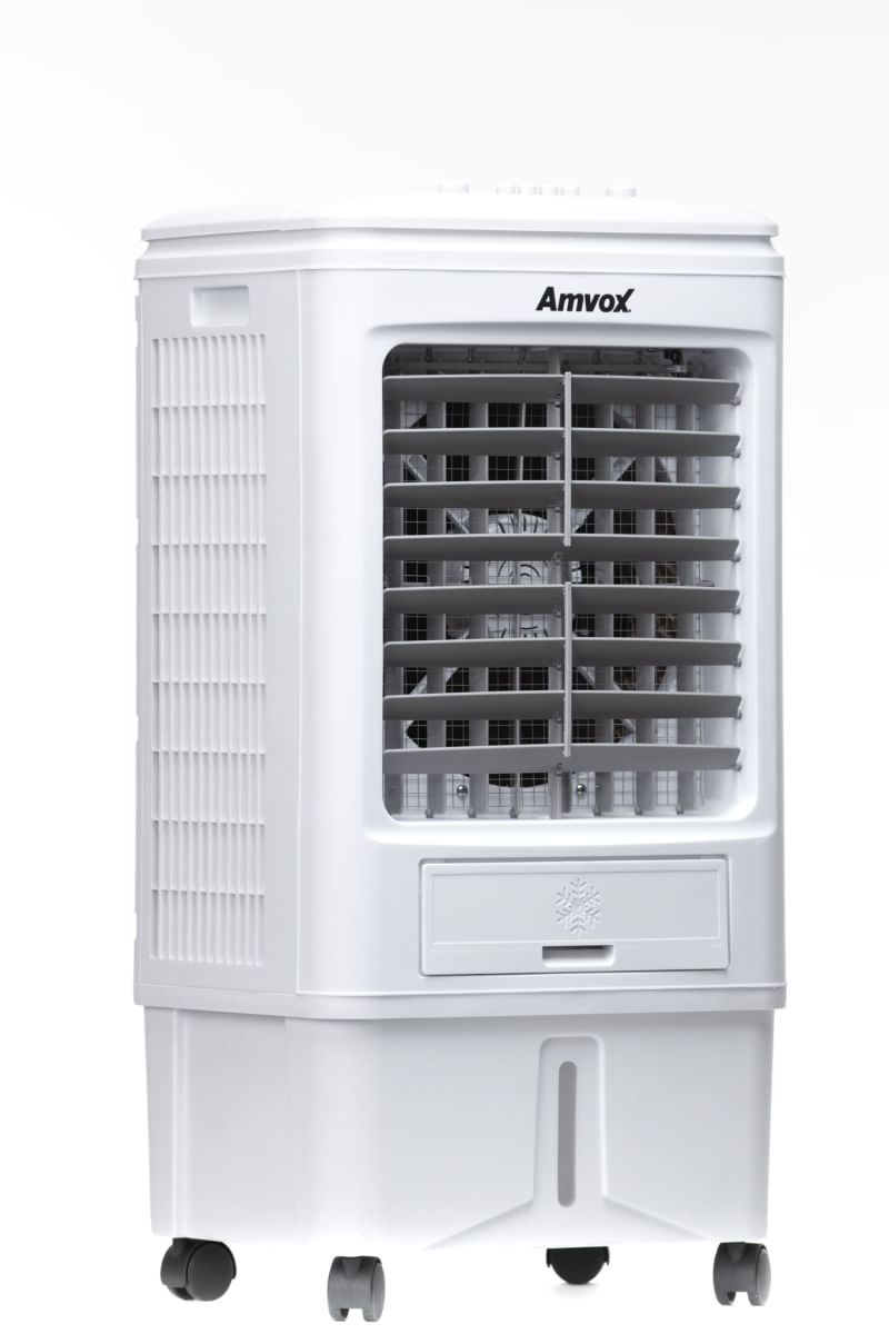 Que tal refrescar seu espaço com o novo Climatizador Amvox? O ACL 018, conta com maior fluxo de ar e ampla área de climatização em comparação com outros modelos da marca, ele conta vem com três níveis de ventilação,proporcionando maior confornto ao ambiente, e é um produto ecologico, trazendo baixo consumo de energia. Não é uma maravilha esse climatizador? Climatizador Amvox acl 018. Possui tanque de água de 18 litros, 3 velocidades, swing automático e controle mecânico. Fluxo de ar máximo de 3.000 m³. Intenso fluxo de ar e vasta área climatizada consumindo apenas 1-2 L/h de água. Produto amigável ao meio ambiente. Informações técnicas Produto: Novo Marca: Amvox Modelo: acl 018 Cor: Branco Tipo: Industrial Indicações: Empresa, Indústria, Residência, Escolas, Comércios, etc... Voltagem: 110V (127V) ou 220V (conforme disponibilidade) Potência: 95W (110V) ou 90W (220V) Frequência: 60 Hz Funções: Multifuncional 3 em 1 (Climatiza, Umidifica e Ventila) Tipo de climatização: Frio Capacidade do tanque de água: 18 l Consumo de água: 1 à 2 L/h Abastecimento de água: Manual Indicador visual de nível de água: Sim Fluxo de ar máximo: 3000 m3 Área de climatização: 15 à 20 m2 Nivel de ruído: 60 dB Tipo de filtro: Colmeia Filtro removível: Não Quantidade de velocidades: 3 Oscilação do vento: Horizontal (manual) e Vertical (automática) Modos de operação: Frio (liga/desliga), Oscilar (liga/desliga) Painel de controle: Mecânico (manual) Controle remoto: Não Timer: Não Aletas móveis: Sim Rodízios para tranporte: Sim Homologado: Inmetro Especificações - Econômico, utiliza até 80% menos energia do que um ar condicionado tradicional - Eficaz, atinge o máximo de refrigeração e de efeito purificador com um consumo mínimo de energia - Rodízios com travamento - Com compartimento para colocar gelo Garantia de fábrica: 12 meses