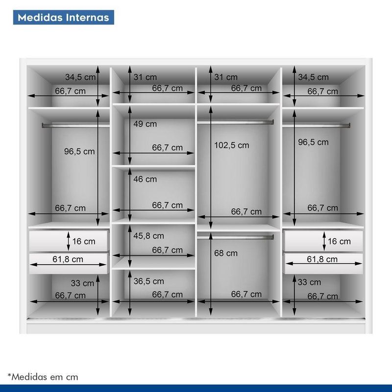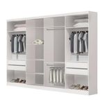 Closet Casal Sem Portas 4 Gavetas Florença Minastex BrancoSente que falta algo no seu dormitório? O que acha de mudar? Com o móvel certo é possível fazer muito pelo seu cantinho e o Closet Florença é a peça ideal para te ajudar a conquistar o cômodo que sempre quis. Com um ótimo espaço para roupas, roupas de cama, sapatos e acessórios, além de ficar sempre organizado, seu quarto também ganhará um toque de charme e um visual clássico.Materiais e Acabamentos:Material Principal; MDPAcabamento da Gaveta; PinturaEscala de Brilho; FoscoEscala de Brilho da Gaveta; FoscoMaterial da Gaveta; MDPTipo de Corrediça da Gaveta; Metálica TelescópicaAcabamento da Prateleira; PinturaEscala de Brilho da Prateleira; BrilhanteMaterial da Prateleira; MDPMontagem:Necessita Montagem; SimComplexidade da Montagem; Alta: deve ser montado por um montador especializadoSistema de Montagem; Parafusos e MinifixRecomendações de Uso, Manutenção e Limpeza; Limpar com flanela limpa e seca. Não usar produtos abrasivos.CaracterísticasPossui Prateleiras; 08Tipo de Porta do Guarda-Roupa; Sem PortaTipo de Gaveta; InternaPossui Portas; NãoPossui Pés; NãoPossui Iluminação; NãoPeso Máximo por Prateleira; 5 kgInterna; BrancoPeso Máximo por Gaveta; 10 kgTipo de Puxador da Gaveta; EmbutidoTipo de Guarda-roupa; ClosetGuarda-Roupa Suporta Até (kg); 90 kgPossui Calceiros; 01Possui Cabideiros; 03Possui Painel de TV; NãoPossui Espelhos; NãoPossui Espaço para Vestidos Longos; NãoInformações Complementares; Atenção: O produto NÃO possui portas.Itens Inclusos; 1 Closet, Kit Ferragens e Manual de Montagem