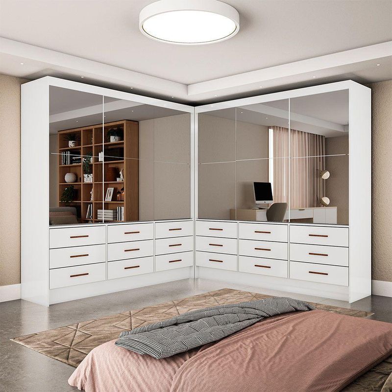 Closet Sevilha 6 Portas Casal Duplo Premium 18 Gavetas Cario BrancoCloset Casal Duplo Sevilha 6 Portas, 18 Gavetas e 12 Espelhos com 2,00m de altura, 3,24m de largura e 0,45m de produndidade, com 4 Portas e 12 Gavetas externas com corredicas metalicas. Ideal para otimizar o espaco do ambiente e deixar tudo organizado. Possui pintura UV, que oferece ao produto resistencia e durabilidade. Estrutura em MDP. As dimensoes apresentadas referem-se a um modulo, sendo importante destacar que o O Closet Casal Duplo Sevilha 6 Portas com 18 Gavetas consiste em 2 modulos em um unico produto. Ele pode ser montado em L, de forma linear ou em paredes distintas, adaptando-se perfeitamente ao seu espaco.Caracteristicas gerais: 6 portas 18 gavetas 12 espelhos Pintura UV Estrutura em MDP Conteudo do embalagem: Closet Casal Duplo Sevilha 6 Portas Dimensoes do produto: Altura: 200 cm Largura: 324 cm Profundidade: 45 cm Peso: 209,6 kg Garantia do fabricante: 3 meses