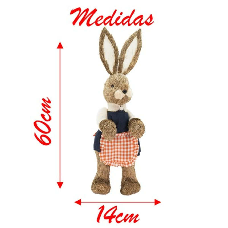 Coelha De Páscoa Decoração em Palha Coelhinha Cozinheira 60cm - Deixe sua casa para a páscoa mais decorada com esta linda Coelhinha. Com seu acabamento de qualidade, é perfeito para decorar seu lar, use sua criatividade para usa-lo em lavabos, banheiros, salas, cozinhas, quartos, área de lazer, escritório, centro de mesa, etc. Perfeito para presentear! Especificações: Material: Palha, Isopor e Tecido. Medidas: Altura - 60 cm Contém: 1 Coelhinha de Páscoa de 60cm. Características Gerais do Produto: Garantia: • Garantia do site - 1 Mês