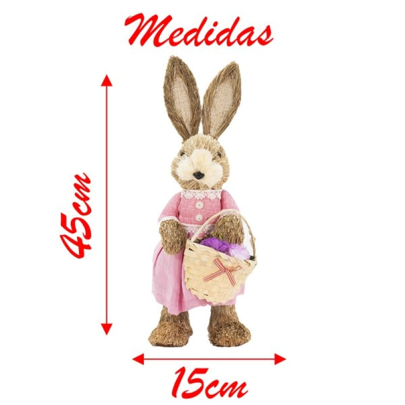 Coelha De Páscoa Decoração Enfeite em Palha Coelhinha 43cm - Deixe sua casa para a páscoa mais decorada com esta linda Coelhinha. Com seu acabamento de qualidade, é perfeito para decorar seu lar, use sua criatividade para usa-lo em lavabos, banheiros, salas, cozinhas, quartos, área de lazer, escritório, centro de mesa, etc. Perfeito para presentear! Especificações: Material: Palha, Isopor. Medidas: Altura - 43 cm Contém: 1 Coelhinha de Páscoa. Características Gerais do Produto: Garantia: • Garantia do site - 1 Mês