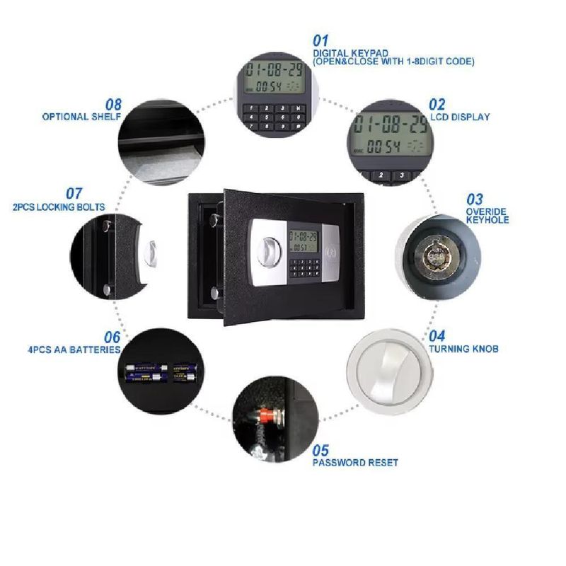 Cofre Eletronico Digital Grande Senha Chave Porta Documentos Armas Display Lcd Bandeja ChumbadoresCofre Digital Eletrônico 8L ? Segurança e Praticidade para Seus Pertences!Proteja seus documentos, joias, dinheiro e objetos de valor com o Cofre Digital Eletrônico 12L, projetado para oferecer máxima segurança e praticidade. Com sistema de abertura eletrônica e chave reserva, ele é ideal para casas, escritórios e pequenos negócios.Destaques do Produto:- Sistema de Segurança Inteligente: Trava eletrônica acionada por senha de até 8 dígitos e chave reserva para emergência.- Alerta de Baixa Bateria: Aviso quando as pilhas precisam ser trocadas.- Material Resistente: Construído em aço reforçado, com duas travas maciças para maior proteção.- Painel Digital com LEDs: Display iluminado para facilitar o uso.- Modo de Bloqueio: Após 3 tentativas incorretas, o teclado é desativado temporariamente.- Instalação Fácil: Possui suporte para fixação em paredes ou móveis, garantindo ainda mais segurança.Especificações Técnicas:Tipo de Abertura: Eletrônica e ManualCapacidade: 8 LitrosMaterial: Aço resistenteCor: Preto e PrataSenha: Até 8 dígitosAlimentação: 4 Pilhas Alcalinas AAPainel: LCD com indicadores luminososDimensões: (L)38 x (A)30 x (C)30 cmPeso do Produto: 12 kg | Peso com Embalagem: 13 kgItens Inclusos:- 1x Cofre Digital 12L- 1x Conjunto de Chaves de Emergência- 1x Kit de Fixação- 1x Feltro Interno para Proteção dos Itens- 1x Manual de InstruçõesAtenção: Evite guardar as chaves de emergência dentro do cofre para não ficar trancado sem acesso!Invista na segurança dos seus bens! Adquira agora o Cofre Digital 12L e tenha tranquilidade no dia a dia!* Cofre Eletronico Digital Grande Senha Chave Porta Documentos Armas Display Lcd Bandeja Chumbadores: desempenho consistente e intuitivo.* Construção criteriosa e acabamento de qualidade.* Medidas: largura 35,00, altura 45,00, profundidade 40,00.* Massas: peso líquido 13,000 kg, peso bruto 13,000 kg.* Indicado para uso em diferentes contextos.