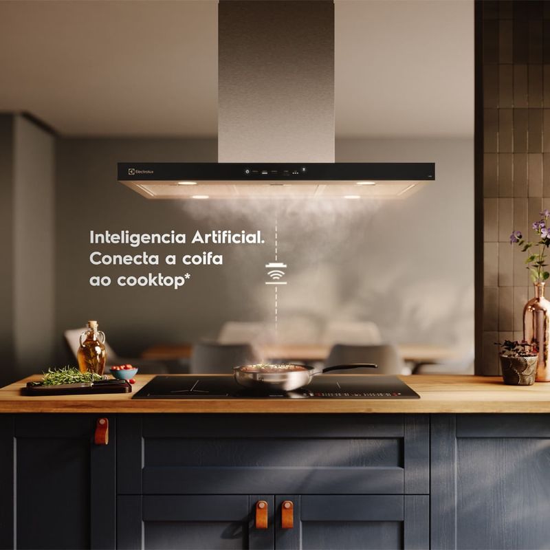 A Coifa de Ilha 90cm Experience CE9IF te oferece uma experiência única na cozinha graças à Inteligência Artificial Hob2Hood. Acesse e conheça! A Coifa de Ilha Electrolux 90cm Inox Experience com Inteligência Artificial e Alto Poder Sucção (CE9IF) foi desenvolvida com tecnologias para simplificar sua experiência na cozinha, mantendo a máxima eficiência de sucção e filtragem. O Alto Poder de Sucção oferece um alto rendimento na captura de fumaças e gorduras durante o preparo das suas receitas. Renova o ar em menos de 2 minutos¹ e mantém a cozinha livre de odores indesejáveis de forma eficaz e segura para toda sua família. Para otimizar a experiência durante o preparo de receitas, conte com a Inteligência Artificial Hob2Hood uma grande inovação da Electrolux que conecta de forma automática a Coifa ao Cooktop², proporcionando uma experiência diferenciada e sem preocupações, já que o sistema identifica a utilização do cooktop, o número de zonas em uso, liga e configura o exaustor automaticamente. Caso queira ajustar manualmente as funções da Coifa, com o Painel Full Touch essa tarefa fica mais fácil com apenas alguns toques. Os filtros são essenciais para a funcionalidade da coifa. Quando é instalada em modo depurador, o Led de Troca de Filtro sinaliza a necessidade da substituição do filtro, garantindo um melhor desempenho do produto. Crie um clima aconchegante para dividir momentos e valorize suas receitas com a Luz LED³ que mantém as cores naturais dos alimentos, perfeito para compartilhar fotos do seu prato com amigos e familiares. O design em aço escovado combina o melhor da resistência do aço escovado com a leveza do vidro, entregando elegância e sofisticação à sua cozinha. Com acabamento impecável, a coifa também é um item de decoração que agrega beleza ao ambiente. Para facilitar ainda mais o uso, possui Função 2 em 1, que permite alternar entre os modos exaustor e depurador. Como exaustor, direciona os odores para o exterior da casa e, como depurador, filtra o ar e devolve para o ambiente livre de impurezas. Assim, você terá mais flexibilidade e versatilidade. A Filtragem Dupla é outro destaque da coifa. Os filtros de alumínio removíveis são capazes de capturar e reter até 75%4 da gordura, além de também serem laváveis em lava-louças.E os filtros de carvão ativado mantém sua cozinha livre de cheiros indesejados. Para que você tenha ainda mais praticidade, a coifa oferece 3 Velocidades para regular de acordo com a necessidade da ocasião. Você pode escolher entre as velocidades baixa, média e alta, que irão facilitar o controle de acordo com a quantidade de fumaça e odores presentes no ambiente. Além do mais, a função timer, quando ativada, faz com que a Coifa de Ilha Electrolux CE6TF permaneça em funcionamento por um tempo após os preparos e desligue automaticamente. Proporcionando uma renovação de ar da cozinha mais eficaz. ¹Testes realizados de acordo com a IEC 61591 em uma cozinha de 10m² com um pé direito de 2,5m, podendo variar conforme o ambiente. ²Em conjunto com os cooktops Electrolux com mesmo sistema de conectividade Hob2Hood: IE60P, IE80P, IE6SF e IE8FB. ³Testes internos realizados para comparar uma lâmpada de LED de 6000K com uma lâmpada de LED Electrolux de 3000K. 4Resultados obtidos em testes internos de acordo com a IEC 61591.