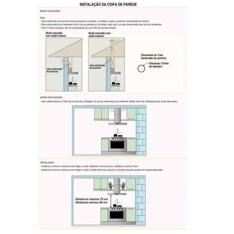 Coifa De Parede 75cm Vidro Curvo Slim Nardelli Yellow 220VDeixe sua cozinha mais moderna com a Coifa de parede Vidro Curvo da Nardelli. Alem de pratica e bonita, possui a base e duto em amarelo e acompanha filtro de aluminio e filtro de carvao ativado. A coifa pode ser instalada de dois modos distintos, como exaustor ou como depurador. Com design diferenciado, possui vidro curvo e temperado, que facilita sua limpeza, iluminacao com lampadas de led e tres velocidades. Traga mais versatilidade para sua cozinha.Para Fogao cooktop de 4 bocas e indicado coifa de 60 ou 70 cm.Para Fogao cooktop de 5 bocas e indicado coifa de 75, 80 ou 90 cm.Para Fogao cooktop de 6 bocas e indicado coifa de 90 cm ou mais.Observacao importante, sempre observar a largura do seu fogao, para que a largura da coifa seja sempre um pouco maior que o fogao cooktop.Instalacao apenas na ParedeObservacao, este modelo nao aceita instalacao no teto. Caso precise de coifa para instalar no teto, basta pesquisar por Coifa de ilha, e colocar a marca desejadaAtencao verifique a voltagem escolhida antes de finalizar sua compraCaracteristicasFuncao depurador ou exaustorFiltro interno de carvao ativadoFiltro externo metalico em aluminio e lavavelPainel de funcoes Easy Touch com 3 velocidadesIluminacao com lampadas de LedSuccao 550 m³hSuporte de fixacao acompanha a coifaDuto dividido em superior e inferior com regulagem de altura. min 68 cm e max 100 cm ja considerando a altura da base da coifaDuto superior possui abertura para ventilacao, quando usado no modo depuradorEspecificacoes TecnicasPotencia lampada 1 W cada umaConsumo 0,142 kWhDimensoesAltura total de 100 cm, com regulagem entre 68 cm e 100 cm, ja considerando a base da coifaLargura vidro 75 cm, vidro ponta a pontaProfundidade vidro 45 cmAltura base 5 cmLargura base 57 cmProfundidade base 37,5 cmPeso 11,15 kgDimensoes do duto L 21 cm x P 20,5 cm. Sao dois dutos em aco carbono pintado de 50 cm de altura cada umGarantia de Fabrica 12 mesesInstalacao por conta do clienteImagens meramente ilustrativasAtencao, o tubo sanfonado para exaustao, NAO acompanha o produto, Vendemos o tubo separadamente. O diametro de saida para o mesmo e de 127 mm de circunferenciaAs dimensoes do produto podem sofrer uma pequena variacao de largura do vidro, de ate 7 sete milimetros. Por este motivo, quando a coifa for instalada de forma embutida em nichos, o fabricante recomenda que seja considerada uma folga de pelo menos 1 cm em cada ladoPara cozinhas com pe direito superior a 2,65 m, temos disponivel para venda a parte, um modelo de duto complementar em aco inox escovado.Sua coifa ja vai pronta para utilizar como depurador pois ja possui internamente filtro de carvao ativado. Caso deseje utilizar como exaustor com saida de ar externa, onde sera necessario fazer uma abertura na parede, apenas precisara comprar e instalar o tubo sanfonado de aluminio flexivel que temos disponivel para venda.