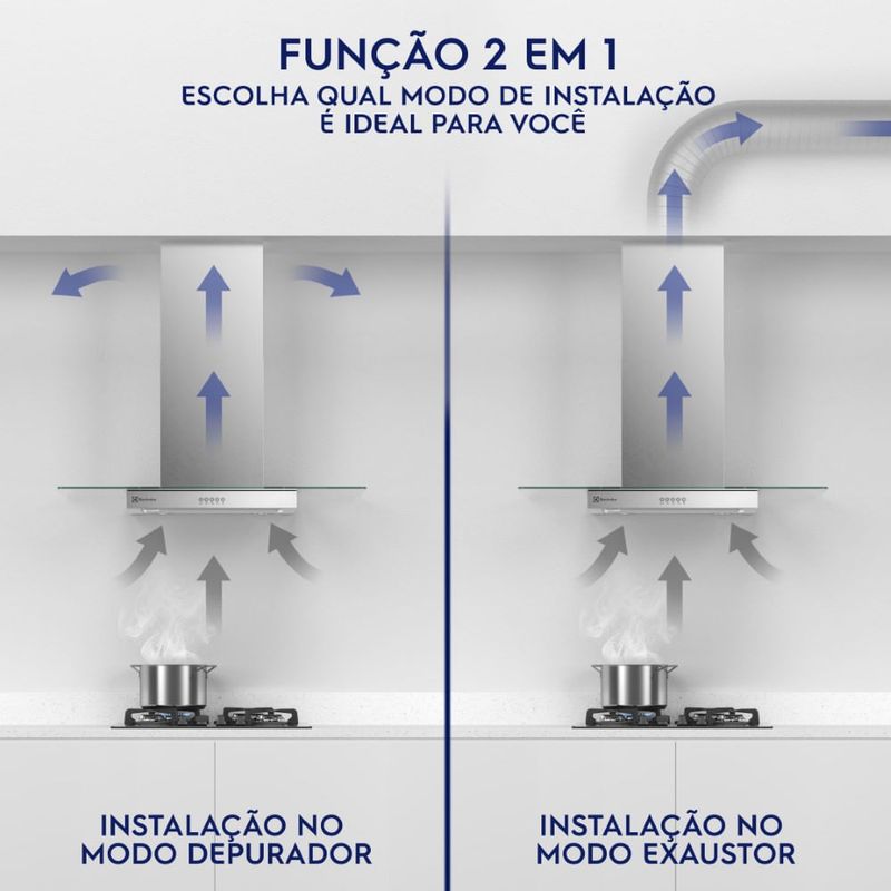A Coifa de Parede Electrolux CE9VX te oferece eficiência alinhada a um design sofisticado para compor sua cozinha e manter o ar limpo por mais tempo. O design moderno e robusto do aço inox escovado e vidro, faz com que a Coifa de parede seja a resposta ideal para renovar o estilo da sua cozinha, além de ser de fácil instalação. O Alto Poder de Sucção evita fumaças e gorduras durante o preparo das suas receitas. O ar é renovado em menos de 3 minutos¹, evitando odores indesejáveis. A Iluminação embutida em LED² facilita o preparo dos alimentos, pois proporciona maior visibilidade durante o processo, garantindo sempre um aspecto mais saboroso dos pratos. A Coifa de Parede da Electrolux possui Filtragem Dupla. Os filtros de alumínio são removíveis e laváveis, capturam melhor as partículas de gordura e retém 80%³ da gordura, além do filtro de carvão ativado, que mantém a sua cozinha livre de cheiros indesejados. O modelo é ideal para fogões e cooktops de 4 a 5 bocas. ¹Testes realizados de acordo com a IEC 61591 em uma cozinha de 10m² com um pé direito de 2,5m, podendo variar conforme o ambiente. ²Testes internos realizados para comparar a lâmpada de LED Electrolux de 6000K com uma lâmpada de 3000K. ³Resultados obtidos em testes internos de acordo com a IEC 61591. ***Esse produto não oferece instação gratuita. Tudo pensado para você. Para uma experiencia Electrolux completa durante a compra de seu novo produto, sugerimos que leia cuidadosamente as especificações, guias e manuais do produto para a instalação correta. Caso haja uma dúvida específica, por favor, entre em contato conosco por meio dos Canais de Atendimento oficiais.