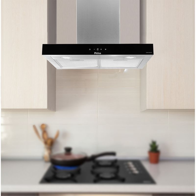 Com a Coifa de Parede Philco 60cm PCO60I você terá mais inovação e tecnologia para sua cozinha! Ela conta com painel touch, muito mais elegante, rápido e prático para a utilização. Possui 60 cm de largura, ideal para fogões de até 4 bocas. Dois benefícios em um único produto, pois além de funcionar como depurador (capta o ar quente e a gordura, filtra e devolve o ar limpo para o ambiente), também funciona como exaustor (expulsa o ar quente para fora do ambiente). Essa Coifa Philco possui dois filtros, sendo um de alumínio e outro de carvão ativo, proporcionando muito mais absorção da gordura e da fumaça. Na hora de cozinhar, as lâmpadas em LED da Coifa vão te ajudar ainda mais iluminando todo o fogão e deixando sua cozinha muito elegante. O aparelho conta ainda com regulagem de altura, possibilitando o ajuste mais adequado à altura da sua cozinha. Você pode ajustar a sucção conforme a necessidade, basta um toque! São três velocidades para te atender sempre que precisar. Tenha beleza e eficiência com a Coifa de Parede Philco 60 PCO60I! • Coifa de Parede • Pode ser usado com Depurador e Exaustor • Possui três velocidades • Potência de 220W • Capacidade de sucção de 600m³/h • Filtro de Carvão Ativo • Filtro de Alumínio • Lâmpadas de LED de baixo consumo • Acompanha Duto • Acompanha kit de instalação • Painel Digital • Possui Timer • Regulagem de altura de acabamento do duto • Composição Metal