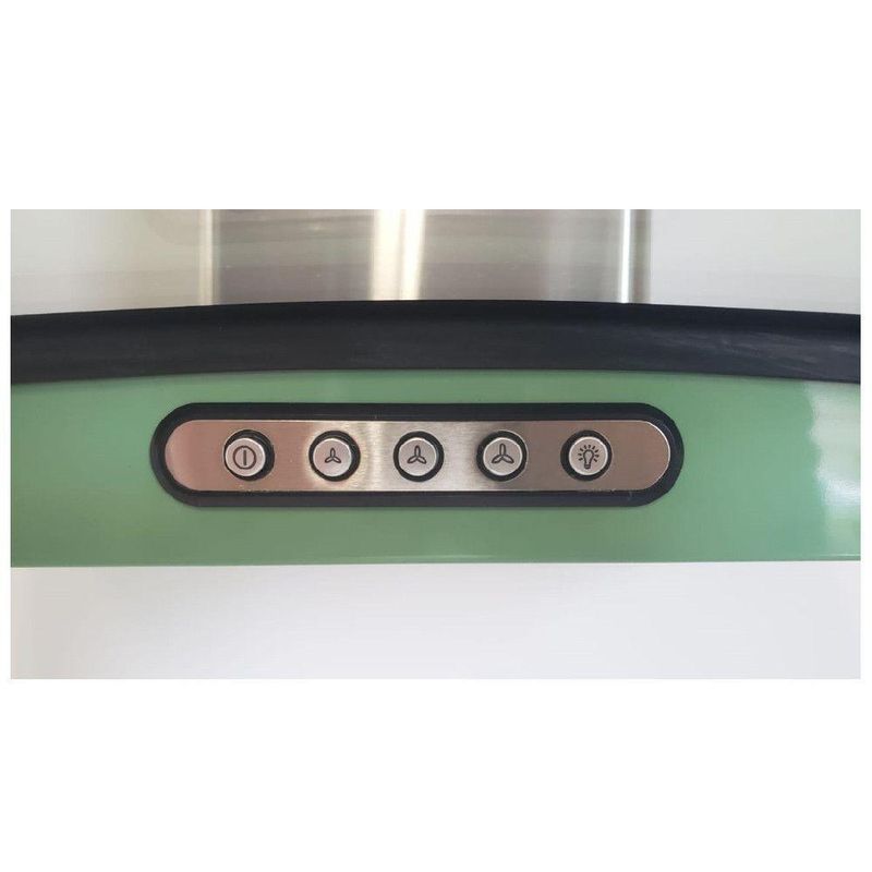 Coifa De Parede Terim Vidro Curvo Verde Chá Inox 70 Cm Verde Chá 110vDeixe sua cozinha mais moderna com a Coifa de parede Vidro Curvo da Terim. Alem de pratica e bonita, possui a base verde e duto inox e acompanha filtro de aluminio e filtro de carvao ativado. A coifa pode ser instalada de dois modos distintos, como exaustor ou como depurador. Com design diferenciado, possui vidro curvo e temperado, que facilita sua limpeza, iluminacao com lampadas de led e tres velocidades. Traga mais versatilidade para sua cozinha.Para Fogao cooktop de 4 bocas e indicado coifa de 60 ou 70 cm. Para Fogao cooktop de 5 bocas e indicado coifa de 75, 80 ou 90 cm. Para Fogao cooktop de 6 bocas e indicado coifa de 90 cm ou mais. Observacao importante, sempre observar a largura do seu fogao, para que a largura da coifa seja sempre um pouco maior que o fogao cooktop. Instalacao apenas na Parede Observacao, este modelo nao aceita instalacao no teto. Caso precise de coifa para instalar no teto, basta pesquisar por Coifa de ilha, e colocar a marca desejada Atencao verifique a voltagem escolhida antes de finalizar sua compra Caracteristicas Funcao depurador ou exaustor Filtro interno de carvao ativado Filtro externo metalico em aluminio e lavavel Painel de funcoes Easy Touch com 3 velocidades Iluminacao com lampadas de Led Succao 550 m³h Suporte de fixacao acompanha a coifa Duto dividido em superior e inferior com regulagem de altura. min 68 cm e max 100 cm ja considerando a altura da base da coifa Duto superior possui abertura para ventilacao, quando no modo depurador Especificacoes Tecnicas Frequencia 60 Hz Ruido 65 dB Potencia do motor 140 W Potencia total 142 W Velocidades 3 Potencia lampada 1 W cada uma Consumo 0,142 kWh Dimensoes Altura total de 100 cm, com regulagem entre 68 cm e 100 cm, ja considerando a base da coifa Largura vidro 70 cm, vidro ponta a ponta Profundidade vidro 45 cm Altura base 4 cm Largura base 57 cm Profundidade base 37,5 cm Peso 10,85kg Dimensoes do duto L 21 cm x P 20,5 cm. Sao dois dutos em inox de 50 cm de altura cada um Garantia de Fabrica 12 meses Instalacao por conta do cliente Imagens meramente ilustrativas Atencao, o tubo sanfonado para exaustao, NAO acompanha o produto, Vendemos o tubo separadamente. O diametro de saida para o mesmo e de 127 mm de circunferencia As dimensoes do produto podem sofrer uma pequena variacao de largura do vidro, de ate 7 sete milimetros. Por este motivo, quando a coifa for instalada de forma embutida em nichos, o fabricante recomenda que seja considerada uma folga de pelo menos 1 cm em cada lado Para cozinhas com pe direito superior a 2,65 m, temos disponivel para venda a parte, um modelo de duto complementar em aco inox escovado. Sua coifa ja vai pronta para utilizar como depurador pois ja possui internamente filtro de carvao ativado. Caso deseje utilizar como exaustor com saida de ar externa, onde sera necessario fazer uma abertura na parede, apenas precisara comprar e instalar o tubo sanfonado de aluminio flexivel que temos disponivel para venda.