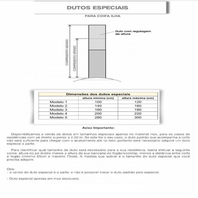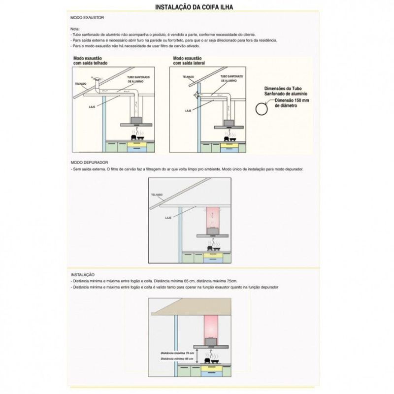 Coifa Ilha 75cm Vidro Curvo Nardelli Inox 220VDeixe sua cozinha mais moderna com a Coifa de Ilha Vidro Curvo da Nardelli Alem de pratica e bonita, possui a base e dutos em inox e acompanha filtro de aluminio e filtro de carvao ativado. A coifa pode ser instalada de dois modos distintos, como exaustor ou como depurador. Com design diferenciado, possui vidro curvo e temperado, que facilita sua limpeza, iluminacao com lampadas de led e tres velocidades. Traga mais versatilidade para sua cozinha.Para Fogao cooktop de 4 bocas e indicado coifa de 60 ou 70 cm Para Fogao cooktop de 5 bocas e indicado coifa de 75, 80 ou 90 cm Para Fogao cooktop de 6 bocas e indicado coifa de 90 cm ou mais Observacao importante, sempre observar a largura do seu fogao, para que a largura da coifa seja sempre um pouco maior que o fogao cooktop Instalacao apenas em Ilha, no Teto Atencao escolha a voltagem do produto antes de finalizar a compra Caracteristicas Funcao depurador ou exaustor Filtro interno de carvao ativado Filtro externo metalico em aluminio e lavavel Painel de funcoes Easy Touch com 3 velocidades Iluminacao com lampadas de Led Succao 700 m³h no modo depurador e 900 m³h no modo exaustor Suporte de fixacao acompanha a coifa Duto dividido em superior e inferior com regulagem de altura. min 65 cm e max 85 cm de duto. Se considerar a a base da coifa, chega a altura total de 90 cm. Duto superior possui abertura para ventilacao, quando no modo depurador Especificacoes Tecnicas Tensao 110V ou 220V, a voltagem deve ser escolhida e selecionada no ato da compra Frequencia 60 Hz Ruido 65 dB Potencia do motor 240 W Potencia total 244 W Velocidades 3 Potencia lampada 1 W cada uma Consumo 0,244 kWh Dimensoes Altura total de 90 cm, com regulagem entre 65 cm e 90 cm, ja considerando a base da coifa Largura vidro 75 cm, vidro ponta a ponta Profundidade vidro 60 cm Altura base 5,7 cm Largura base 60 cm Profundidade base 40 cm Peso 27,80 kg Dimensoes do duto L 32 cm x P 28 cm, dividido em duas partes Garantia de Fabrica 12 meses Instalacao por conta do cliente Imagens meramente ilustrativas Atencao O Tubo sanfonado para exaustao, NAO acompanha o produto, Vendemos o tubo separadamente. O diametro de saida para o mesmo e de 150 mm de circunferencia As dimensoes do produto podem sofrer uma pequena variacao de largura do vidro, de ate 7 sete milimetros. Por este motivo, quando a coifa for instalada de forma embutida em nichos, o fabricante recomenda que seja considerada uma folga de pelo menos 1 cm em cada lado Para cozinhas com pe direito superior a 2,55 m. Temos disponivel para venda a parte, alguns tamanhos de dutos especiais. Nas imagens do anuncio disponibilizamos a informacao das medidas dos dutos especiais. Sua coifa ja vai pronta para utilizar como depurador pois ja possui internamente o filtro de carvao ativado. Caso deseje utilizar como exaustor com saida de ar externa, onde sera necessario fazer uma abertura na parede, apenas precisara comprar e instalar o tubo sanfonado de aluminio flexivel que temos disponivel para venda.