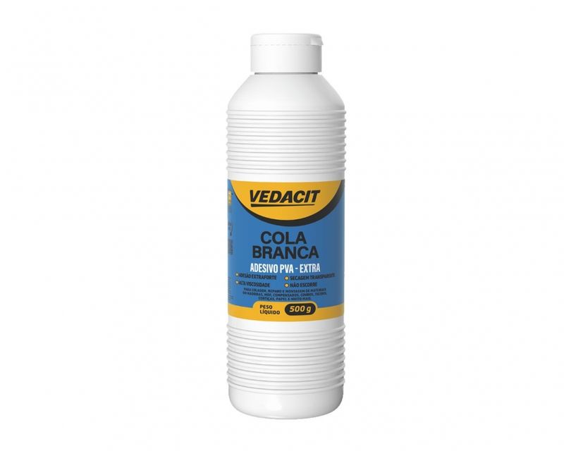 A Cola Branca Vedacit Extra 500G é um adesivo de alta qualidade, ideal para uso em diversos tipos de materiais, como madeira, metal, plástico, couro, tecido, cerâmica, vidro, entre outros. Possui alta resistência à água, umidade e intempéries, além de ser resistente ao calor e à luz solar. É fácil de aplicar e seca rapidamente, proporcionando uma excelente aderência. É livre de solventes e não contém clorofórmio.