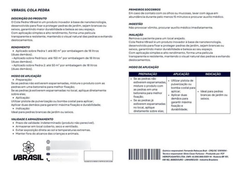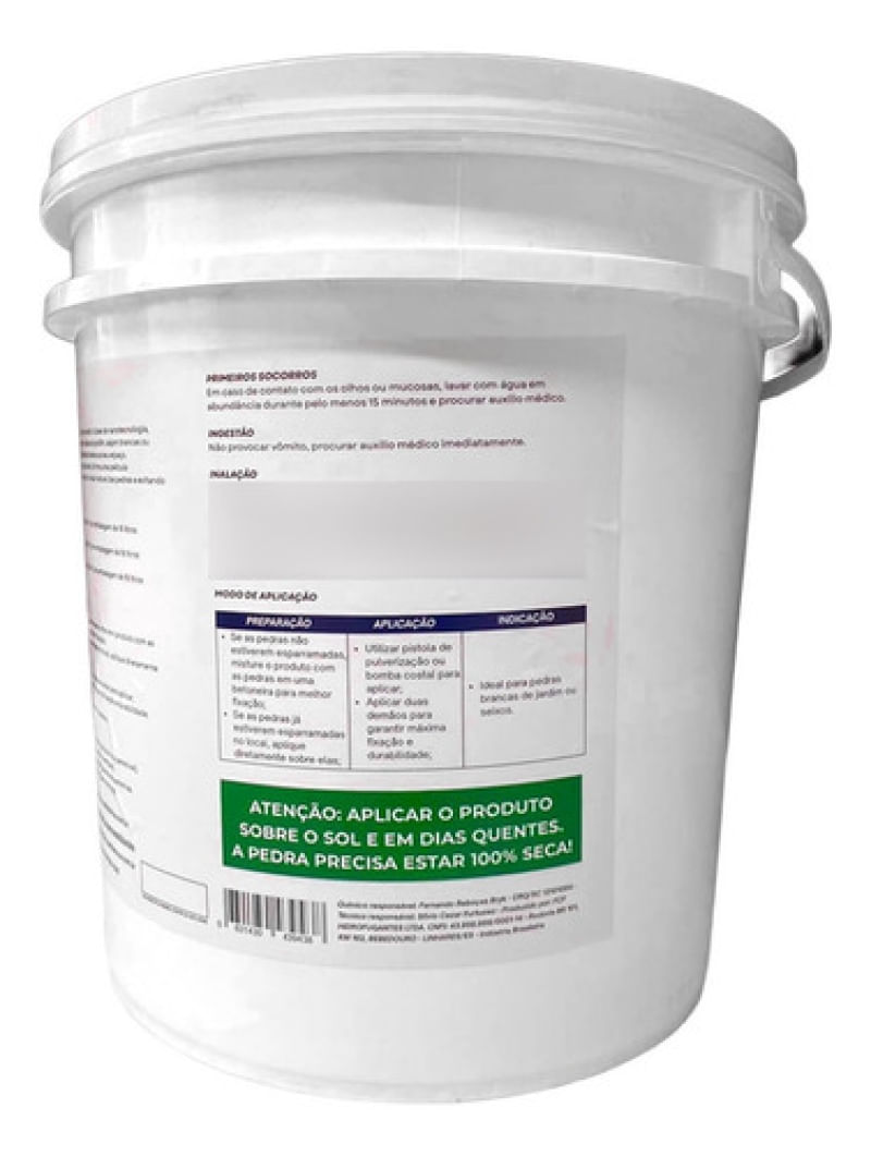 Descrição:A Cola Pedra VBrasil, desenvolvida com selante nanotecnológico de alta performance, é a solução ideal para quem deseja fixar, proteger e valorizar pedras decorativas de jardim com praticidade e eficiência. Sua fórmula cria uma película transparente, resistente e duradoura, que mantém o aspecto natural das pedras, evita deslocamentos e proporciona um acabamento impecável ao paisagismo. Compatível com pedras brancas, seixos e pedriscos, pode ser aplicada em pedras soltas, através de mistura em betoneira, ou em pedras já posicionadas, por pulverização direta. Além disso, seu alto rendimento garante cobertura ampla com apenas duas demãos, oferecendo excelente custo-benefício.Informações Técnicas:Fixação e Proteção Eficaz – Ideal para pedras decorativas em áreas externas.Tecnologia Nanotecnológica – Cria película transparente que não altera o visual.Alta Durabilidade – Resiste às intempéries e mantém o paisagismo sempre bonito.Aplicação Simples – Pulverizador, bomba costal ou mistura em betoneira.Acabamento Natural – Realça o visual sem comprometer a estética.Rendimento Médio (2 demãos):Pedra 1: até 80 m²Pedrisco: até 150 m²Pedra 2: até 50 m²Modo de Aplicação:Preparação:Se as pedras não estiverem esparramadas, misture o produto com as pedras em uma betoneira para melhor fixação.Se as pedras já estiverem esparramadas no local, aplique diretamente sobre elas. Aplicação:Utilizar pistola de pulverização ou bomba costal para aplicar.Aplicar duas demãos para garantir máxima fixação e durabilidade. Indicação:Ideal para pedras brancas de jardim ou seixos.Itens Inclusos:1x Cola Pedra 18 Litros