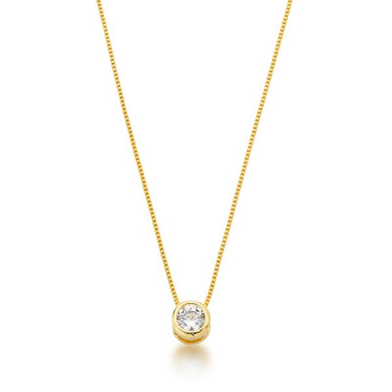 Colar Ponto de Luz 7,7mm Banhada a Ouro 18k 45cm - O colar com ponto de luz de zircônias banhado a ouro 18k é mais do que um simples acessório. Ele é um emblema de beleza, um símbolo de momentos preciosos e uma declaração de estilo pessoal. Ele oferece uma forma de expressão única, permitindo que quem o usa brilhe com luz própria. É uma peça que fala de sutilezas, de detalhes que fazem toda a diferença, e de uma beleza que, embora possa ser imediatamente visível, tem camadas de significado e emoção que apenas se revelam com o tempo. Características Gerais do Produto: • Garantia: 6 Meses Contra Defeitos de Fabricação • Material: Semijoia Banhado a Ouro 18k • Cor Metal: Dourado • Dimensão: Corrente 45, 50 ou 60 cm; Pingente 7,7mm Acompanha o produto: • 01 colar Garantia: • Contra defeito de fabricação