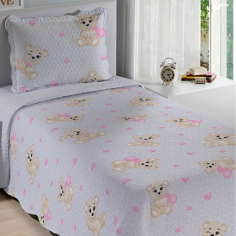 A Colcha com Porta Travesseiro Matelassê Renove Juvenil Teddy Corações Buettner é perfeita para deixar o quarto das crianças ainda mais acolhedor, moderno e cheio de charme. Com um design infantil exclusivo de ursos e corações, o conjunto transforma a decoração de forma prática, oferecendo um toque lúdico que encanta os pequenos e agrada toda a família.Confeccionada em microfibra 70 g/m², a colcha possui matelassê prensado sem costura, que garante acabamento sofisticado e maior resistência. Seu enchimento de 150 g/m² oferece maciez e aconchego na medida certa, ideal para noites tranquilas de sono.O modelo é dupla face, permitindo variar o visual do ambiente com praticidade e estilo. Produzida com tecido externo, interno e enchimento 100% poliéster, proporciona durabilidade, fácil manutenção e secagem rápida, características que tornam o dia a dia muito mais prático.Para quem deseja unir funcionalidade, conforto e uma decoração criativa, a Colcha com Porta Travesseiro Matelassê Renove Juvenil Teddy Corações Buettner é a escolha certa para renovar o quarto das crianças com qualidade e beleza.Produto com a qualidade Buettner, de geração em geração, a marca de Cama, Mesa e Banho mais querida do Brasil.