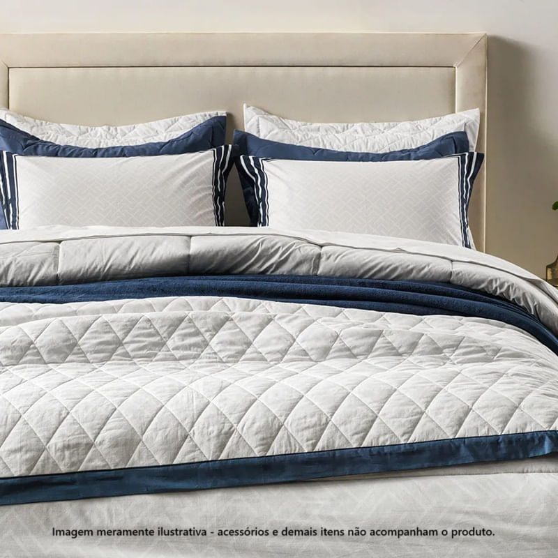Colcha Solteiro com Porta Travesseiro 200 Fios 100% Algodão Barcelos: A Colcha Barcelos Solteiro com medidas 1,80m x 2,60m é a combinação perfeita de sofisticação e conforto para transformar seu quarto. Confeccionada em 100% algodão e 200 fios, ela oferece toque macio e sensação de frescor, além de ser hipoalergênica e resistente a bolinhas, garantindo durabilidade e bem-estar. A colcha dupla face com cantos quadrados proporciona versatilidade e elegância, enquanto o porta-travesseiro 50cm x 70cm com três abas de 5 cm, completa o conjunto com um acabamento refinado. Com suas cores branca e azul, o design atemporal da estampa traz tranquilidade e harmonia ao ambiente, sendo fácil de coordenar com o edredom e jogo de cama da mesma linha. Thermobond: O Thermobond, presente em colchas, edredons e porta-travesseiros da Karsten, é a tecnologia que mantém o enchimento uniforme, evitando o surgimento de bolinhas indesejadas no interior do produto. As camadas são reforçadas com costuras em matelassê, que fixam o enchimento ao tecido, garantindo acabamento impecável e maior durabilidade. Experimente a combinação perfeita de resistência, beleza e conforto que transforma o seu descanso em um verdadeiro momento de cuidado. Coleção Instantes: Para acompanhar seus melhores momentos, a coleção Instantes da Karsten, vem com cores delicadas e detalhes que agregam valor aos seus momentos com o toque do puro algodão junto de tecnologias de produção de ponta para entregar produtos de qualidade. Viva cada momento com o conforto e aconchego que a Karsten busca proporcionar em sua vida e aprecie cada segundo do seu bem-estar e da sua família. Especificações do produto Quantidade de Peças: 2 Peças Estilo: Casual Tamanho: Solteiro Tecido: Percal de Algodão Cor: Branco Tipo: Estampado Quantidade de Fios: 200 Fios Itens Inclusos: 1 Colcha; 1 Porta-travesseiro Acabamento: Colcha dupla face com cantos quadrados; Porta-travesseiro com 3 abas de 5 cm; Mais encorpado e macio; Altamente respirável; Antipilling e Hipoalergênico; Enchimento de Poliéster; Gramatura de 112g/m² Medida: Colcha: 1,80m x 2,60m; Porta-Travesseiro: 50cm x 70cm Instruções de Lavagem: Lavação a 40ºC; Proibido alvejar; Secar em tambor com temperatura máxima de 60º; Ferro de passar com temperatura maxima de 110º C; Proibido lavar a seco Outras Observações: Pode haver pequena variação de cor, de acordo com a configuração e modelo do monitor ou do aparelho celular. Consultar a cor nas especificações técnicas do produto. Combinação de Cores: Fundo branco com estampado geométrico de tons cinzas. Barra da colcha em azul marinho. Quem somos: "A Belladomi é uma loja estabelecida desde 2013, especializada em oferecer uma ampla variedade de produtos para melhorar o conforto e a acolhida de lares. Com um compromisso firme com a qualidade, cada item selecionado reflete esse padrão elevado. Trabalhando com marcas reconhecidas, a Belladomi assegura excelência em todas as peças, mantendo preços competitivos na região. Sua equipe se destaca pelo atendimento diferenciado, disponível para auxiliar em todas as etapas da compra, garantindo uma experiência satisfatória para o cliente. Seu objetivo é contribuir para a tornar as casas mais aconchegantes e elegantes, oferecendo produtos de alta qualidade a preços justos."