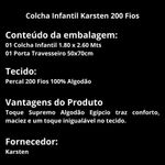 A Colcha Solteiro da Karsten 180x260cm é fabricado em tecido 100% algodão - 200 fios, toque super macio e confortável. Produto de alta qualidade! Não desbota, não forma bolinhas. Composto por:1 Colcha Solteiro Karsten 180 x 260cm1 Porta Travesseiro 50x70cm Especificações:Marca: KarstenModelo: Percal 200 Fios EstampadoTecido: 100% Algodão / Enchimento 100% PoliésterForma bolinhas: NãoDesbota: NãoToque de frescor, conforto de um verdadeiro tecido 200 fios Tamanho:Largura: 1,80 mComprimento: 2,60 m Vantagens do Produto:Dupla face com tratamento termobond e cantos quadrados; Porta-travesseiro com 3 abas de 5cm; Toque supremo;Algodão Soft;Antipilling;Hipoalergênico, ideal para quem tem pele sensível ou alergias;Fio penteado.