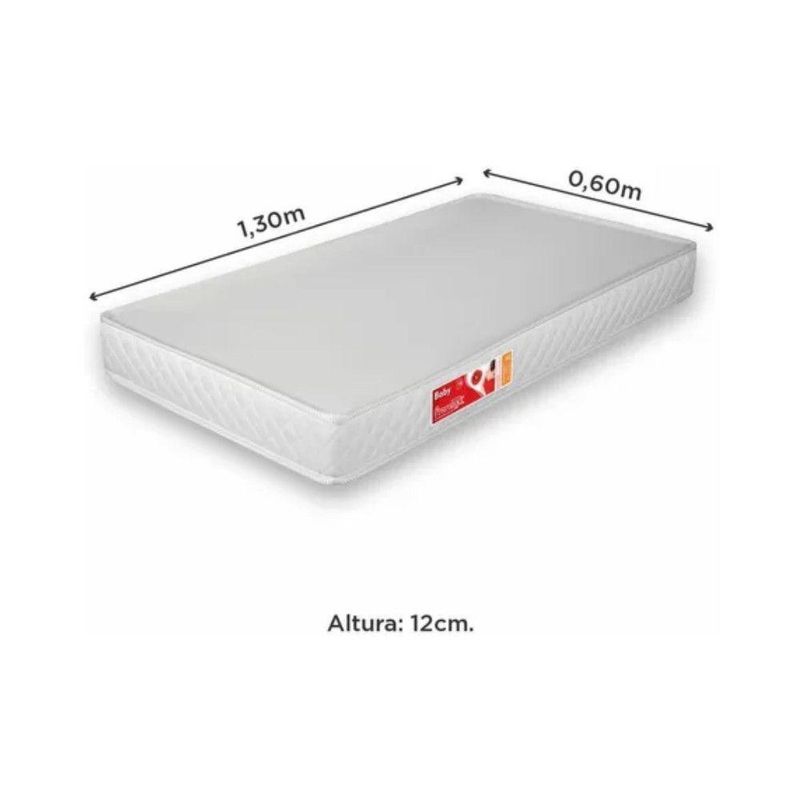 Colchão Berço Baby De Espuma 60x130x12cm Prorelax BrancoNos primeiros anos de vida, o sono é fundamental para o crescimento e desenvolvimento do seu bebê. Por isso, a Prorelax possui uma linha de colchões que oferece conforto e .Acabamento LisoEspuma D18Nível de Conforme IntermediárioRevestimento Stretch e Lisolene (plástico)Suporte de peso 30kgNão possui tratamento , e Garantia 3 mesesAVISO: Esclarecemos que a OPÇÃO MÓVEIS se responsabilizará pela dos produtos adquiridos até a porta de entrada ou portaria do indicado, ou seja: é de total responsabilidade do cliente a montagem, desmontagem e instalação do produto adquirido. Para evitar futuros desagrados ou imprevistos com a , também é necessário que o cliente confira as dimensões do produto escolhido, antes de finalizar a compra, devendo certificar-se de que a mercadoria passará normalmente por elevador, porta, escada e corredor.
