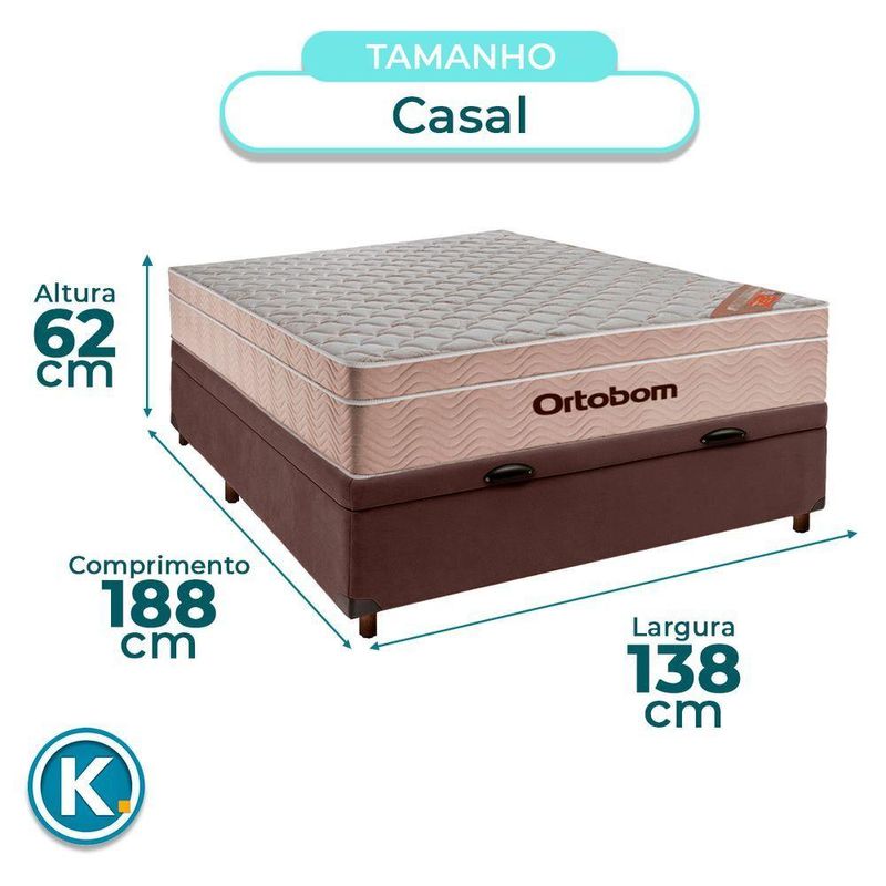 Colchão Casal Molas Ensacadas + Bau Marrom - Airtech OrtobomConjunto Casal Colchão Airtech + Cama Box BauColchão Ortobom Casal com 25cm de altura, ideal para conforto no uso diárioTecido em poliéster que garante toque suave e boa ventilaçãoSuporte de até 120kg, ideal para diferentes biotipos com firmeza balanceadaBase baú casal com 37cm de altura e amplo espaço interno para organizaçãoRevestimento em Veludo , fácil de limpar e com visual modernoEstrutura reforçada com capacidade para até 150KgFicha Técnica Colchão:Modelo: AirtechMarca: OrtobomTamanho: CasalTecido: PoliésterLargura: 138cmComprimento: 188cmAltura: 25cmSuporte de Peso: 120KgGarantia: 3 MesesFicha Técnica Cama Box Bau:Modelo: PopMarca: NatureTamanho: CasalTecido: VeludoLargura: 138cmComprimento: 188cmAltura: 30cmAltura dos Pés: 7cmMaterial dos Pés: MadeiraSuporte de Peso: 150KgPeso: 35KgGarantia: 3 MesesAtenção:Antes da compra certifique-se de que o produto passa por elevadores, portas e corredores.As transportadoras não realizam entregas por escadas ou içamentos.Caso o item não caiba no elevador, a entrega será considerada concluída no térreo do prédio.A cor e tonalidade do produto pode variar de acordo com o dispositivo que o usuário está acessando.
