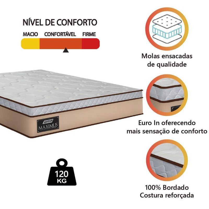 Colchão Casal Queen Gazin Maximus Molas Ensacadas 158x198x24cm BegeVocê merece o melhor quando se trata do seu sono e bem-estar, e por isso o Colchão Maximus se torna a escolha perfeita para o seu quarto! Conta com molas ensacadas individualmente que trabalham em conjunto para garantir conforto e durabilidade, pois desta forma independente, o movimento de uma pessoa não interfere no conforto da outra. Confeccionado em malha matelassê e fibra siliconada que permite melhor ventilação, proporcionando ainda mais conforto, lateral em tecido suede de toque macio e ainda conta com uma camada de euro in, proporcionando maciez. Invista na qualidade do seu sono e experimente garantia total de descanso e qualidade de vida!MEDIDAS:[ A ] = 24 cm[ L ] = 158 cm[ P ] = 198 cmPESO: 39 kgPESO SUPORTADO: 120kg por pessoaMODELO: Colchão Casal Queen Gazin Maximus Molas Ensacadas 158x198x24cmMARCA: GazinREVESTIMENTO SUPERIOR: Matelassê malha + fibra siliconada, tecido que permite melhor ventilação, proporcionando conforto térmico e toque macioREVESTIMENTO LATERAL: Tecido suede macio, especialmente selecionado para garantir uma sensação agradável ao toque e um acabamento sofisticadoREVESTIMENTO INTERIOR: Molas ensacadas que permitem que o colchão suporte até 120kg por pessoa, oferecendo conforto e estabilidade durante o sonoREVESTIMENTO INFERIOR: Tecido antiderrapanteMOLEJO: Molas ensacadas Soft PillowEURO/PILLOW: Euro In oferecendo ainda mais sensação de conforto.POSSUI EPS: SimESPUMA: Camada de espuma D28ITENS INCLUSOS: 1 Colchão de 1,58mGARANTIA: 12 Meses pelo FabricanteA Esplanada Móveis se responsabiliza pela dos produtos adquiridos até a porta de entrada ou portaria do indicado, se a portaria do condomínio permitir, as são efetuadas no piso térreo e é de responsabilidade do cliente a locomoção da mercadoria até seu apartamento ou casa. Confira as dimensões do produto e certifique-se de que estão adequadas aos elevadores, portas e corredores do da . Não fazemos a montagem, desmontagem do produto e/ou portas e janelas, pela escada ou içamento pelo lado de fora do prédio. Não está incluso no de o deslocamento até o interior do apartamento, com ou sem elevador, ou deslocamento em locais de difícil acesso como escadarias.