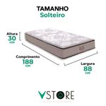 Colchão Four Season Molas Ensacadas Solteiro V-store 88x188A tecnologia que a sua casa merece está na V-Store!Os colchões Four Seasons oferecem sustentação independente com molas ensacadas, garantindo uma posição correta durante o sono e eliminando a transferência de movimentos, perfeito para casais. O revestimento em malha 100% algodão combina resistência e conforto, enquanto os tratamentos e proporcionam mais saúde e qualidade de vida. Além disso, o pillow top adiciona uma camada extra de conforto, tornando suas noites ainda mais agradáveis. O sistema EPS também contribui para maior durabilidade e conforto térmico.Com 10 anos de garantia no molejo e 1 ano no estofamento (mediante avaliação técnica), você pode comprar com total tranquilidade e confiança.Transforme suas noites com os colchões Four Seasons Dupla Face ? adquira já o seu!CARACTERÍSTICAS DO PRODUTOModelo: Four SeasonMarca: V-StoreTamanho SolteiroDimensões: 88x30x188 (Largura x Altura x Comprimento)Conforto: MédioSistema: Molas EnsacadasPillow: Pillow TopPeso Máximo recomendado: 150 kg (Por pessoa)Proteções: , , , Garantia: 12 Meses (Espuma) / 10 anos ( Conjunto de Molas Ensacadas)