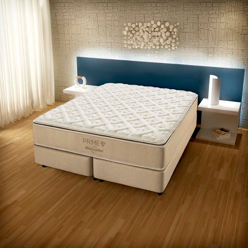 Se você está em busca de um colchão que proporcione mais beleza para seu dormitório e muito mais conforto para suas preciosas noites de sono, o incrível Colchão King Prime da AmericanFlex é perfeito para você!Este belo colchão possui tecido em malha com bordado exclusivo, de toque macio e suave, possibilitando o total conforto para uma noite de sono tranquila. Além disso, os fios de sua trama possibilitam a passagem de ar entre o corpo e o produto, auxiliando no controle da temperatura e trazendo frescor durante o sono, perfeito para dias mais quentes.Com alto suporte de peso, as molas ensacadas individualmente moldam-se perfeitamente ao corpo, trazendo estabilidade durante o sono, pois são acionadas individualmente, diminuindo a sensação de movimentos independentes e o ruído.O colchão Prime também conta com Pillow Top, uma camada extra de espuma Hiper AMX de alta resiliência, exclusividade da marca AmericanFlex. Ela é formulada com polióis e silicones especiais que possibilitam uma alta performance no retorno ao toque, reduzindo a fadiga da espuma, prolongando a vida útil do produto e possibilitando muito mais conforto para você.Além disso, ainda conta com tratamento Antiácaro e Antifungo, indispensáveis para quem possui problemas respiratórios como alergia e rinite, pois nosso quarto é uma das áreas da residência com maior concentração de ácaros, ocasionando assim saúde e proteção para você e sua família.Adquira agora mesmo mais qualidade, durabilidade e beleza estética para seu quarto com o Colchão King Prime da AmericanFlex.