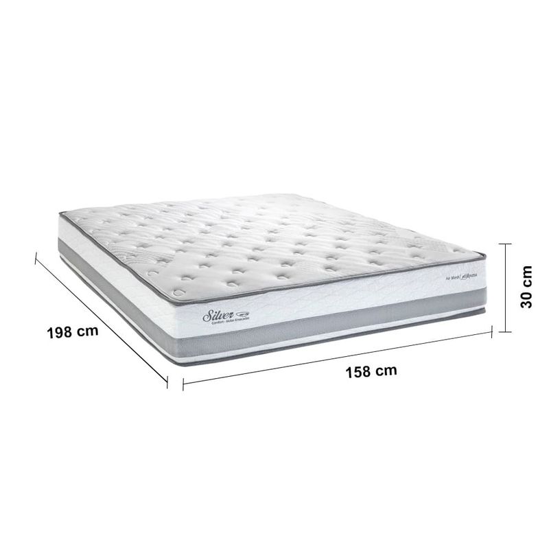 Materiais de alta qualidade para suas noites de sonoO Colchão Herval Silver foi projetado para quem busca uma noite de sono superior. Com suas molas ensacadas, oferece um suporte individualizado que se adapta a cada parte do corpo. Cada mola é envolvida em tecido, proporcionando um conforto adaptável e reduzindo a transferência de movimento entre os que compartilham o colchão. Essa tecnologia se molda às curvas do corpo, promovendo um alinhamento adequado da coluna e aliviando pontos de pressão.Ventilação e Frescor com Tecido AirmeshO Tecido Airmesh é ideal para quem deseja um ambiente de sono mais confortável e saudável. Sua estrutura respirável permite uma excelente circulação de ar, ajudando a manter a temperatura do colchão equilibrada durante a noite. Isso significa que, mesmo em noites quentes, o calor é dissipado, proporcionando um descanso fresco e agradável.Sustentabilidade e conforto na hora do descansoEste colchão é feito com Eco Ecospuma, um material sustentável que garante conforto e oferece suporte firme e aconchegante, além de regular a temperatura, evitando o calor excessivo. Com o Pillow Top One Side, você tem uma camada adicional de conforto, e seu forro antiderrapante proporciona estabilidade, sendo a escolha ideal para quem valoriza tanto qualidade quanto a sustentabilidade.