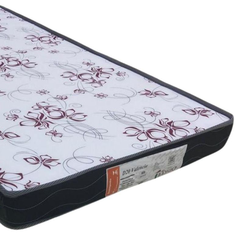Colchão Solteiro (78x188) D20 Preto Valencia Topázio ColchõesDesfrute de noites de sono revigorantes com o Colchão Solteiro Valencia da renomada marca Topázio Colchões. Com suas dimensões generosas de 78x188x12 centímetros, é perfeito para quem busca conforto individualizado. Sua espuma D20 proporciona o suporte ideal para uma postura correta durante o sono, garantindo o descanso necessário para enfrentar o dia seguinte.O elegante revestimento preto em poliéster confere um toque de sofisticação ao ambiente, enquanto o tampo em poliéster proporciona uma superfície suave e agradável ao toque. Transforme seu quarto em um refúgio de tranquilidade e conforto com o Colchão Solteiro Valencia da Topázio Colchões. Atenção: As CORES e/ou GRAVURAS dos colchões poderão sofrer alterações na sua tonalidade ou tipologia na parte facial do produto dependendo da disponibilidade do fornecedor.