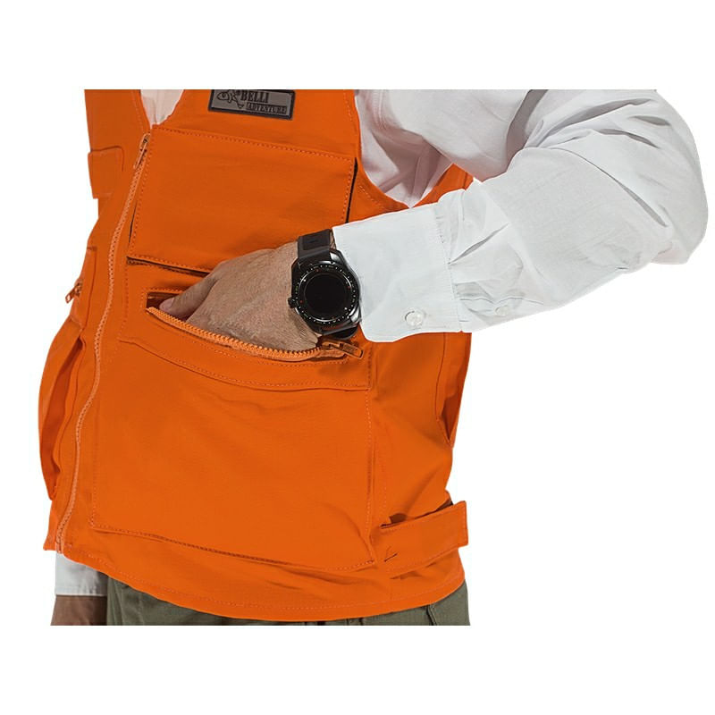 Desenvolvido especialmente para o CAÇADOR que não abre mão de CONFORTO, PRATICIDADE e SEGURANÇAFabricado em brim reforçado na cor LARANJA, tornando a peça bastante visível e EVITANDO possíveis ACIDENTES.Conta diversos slots para acoplamento de acessórios e armazenamento de diversos itens, sendo:* 2 Bolsos G com zíper na parte posterior* 1 Bolso GG com zíper na parte traseira* 1 Slot em velcro para cartucheira modular* 3 Slots para acoplamento de rádio comunicador e diversos outros acessórios* 2 Ajustes laterais para melhor caimentoESPECIFICAÇÕES:* Confeccionada em Brim Comfort* Composição 67% algodão e 33% poliéster* Tecido amaciado para melhor conforto* Produto 100% Brasileiro - Fabricação Nacional