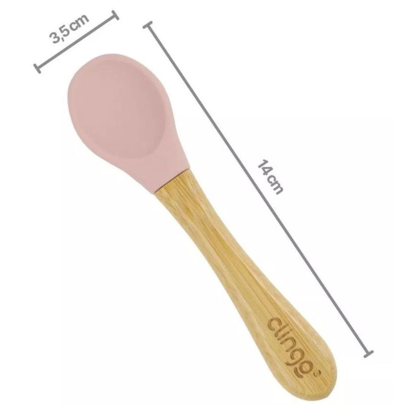 COLHER DE BAMBU E SILICONE - LINHA ECO GREEN - ROSA - 3048 - CLINGO Colher de Treinamento de Bambu e Silicone Linha Eco Green Rosa. A colher em bambu e silicone da Clingo, foi confeccionada em bambu, para ser 100% sustentável e biodegradável, pensado no futuro dos seus pequenos! Ela também é antimicrobiana e antibacteriano, para prevenir a proliferação de sujeirinhas. Além disso, as bordas arredondadas que não machucam o seu bebê durante a refeição! Diferenciais da Colher de Bambu:- Toque Agradável: O bambu é resistente ao calor, o que evita a transferência da temperatura dos alimentos para a superfície do produto e o torna uma alternativa agradável ao toque das mãozinhas do seu bebê.- Detalhes em Silicone: O silicone utilizado é de grau alimentício de qualidade superior, livre de BPA e seguro. Não é biodegradável, porém é um resíduo reciclável e reutilizável, opte pelo descarte correto.- Mais Sabor: O bambu não absorve odores, sabores ou cores, o que garante que os pequenos sintam o gosto de cada alimento.O Bambu é uma planta naturalmente antibacteriana e livre de toxinas. Por não utilizar nenhum tipo de agente químico em seu cultivo, o bambu não danifica o solo e ainda contribui para diminuir o efeito estufa, já que libera mais oxigênio do que as outras plantas. O silicone utilizado é de grau alimentício, de qualidade superior, livre de BPA e seguro. O silicone não é biodegradável, porém, é um resíduo reciclável e reutilizável, sempre opte pelo descarte correto. Por se tratar de um material com diferentes idades biológicas, a tonalidade do bambu pode variar entre uma peça e outra, o que não altera sua resistência e durabilidade. Tamanho da colher: 14 cm x 3,5 cm x 1 cm Material: Silicone e bambu Estampa: Não Idade: 6 meses+ Livre de BPA: Sim SAC: Quantos lados possui? Possui apenas o lado da colher. O talher possui aço? Não, foi confeccionado em bambu e silicone. O talher é resistente? Sim, resistente e prático. Posso levar ao microondas e lava-louças? Sim, você pode levar a lava-louças, porém, não pode ser levado ao microondas.