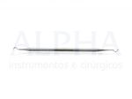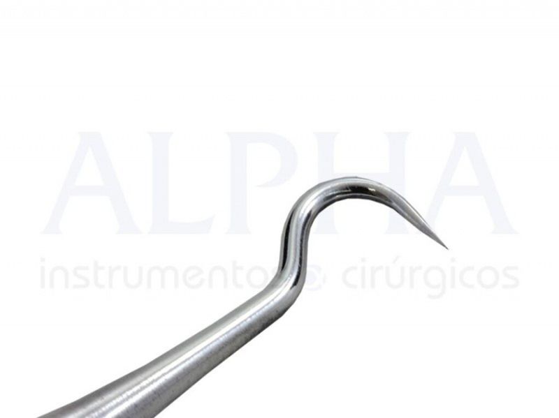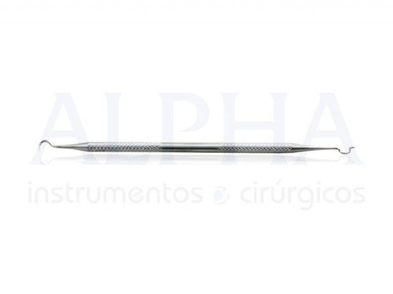 Colocador de amarrilho elástico e alastic com sonda cabo 6mm. Instrumento Cirúrgico não articulado não cortante. Produzido em Aço Inoxidável. Utilizado para instalar e remover o amarrilho elástico (alastic) que prende o arco de nivelamento ao braquete. Este instrumental possui duas partes ativas: uma delas com sonda exploradora. A extremidade oposta, quadrangular, prende o alastic para que este seja colocado sobre o braquete.