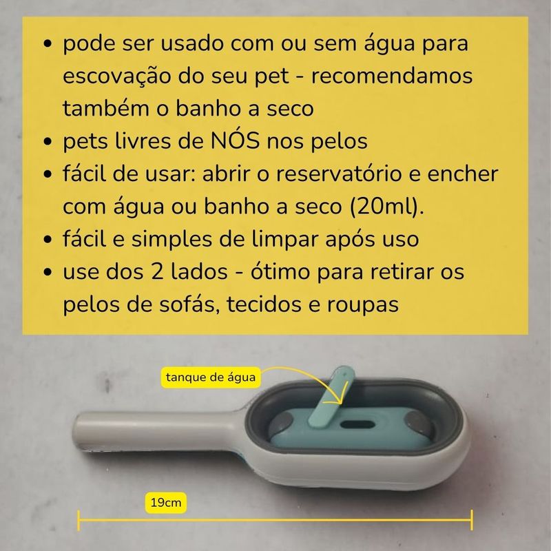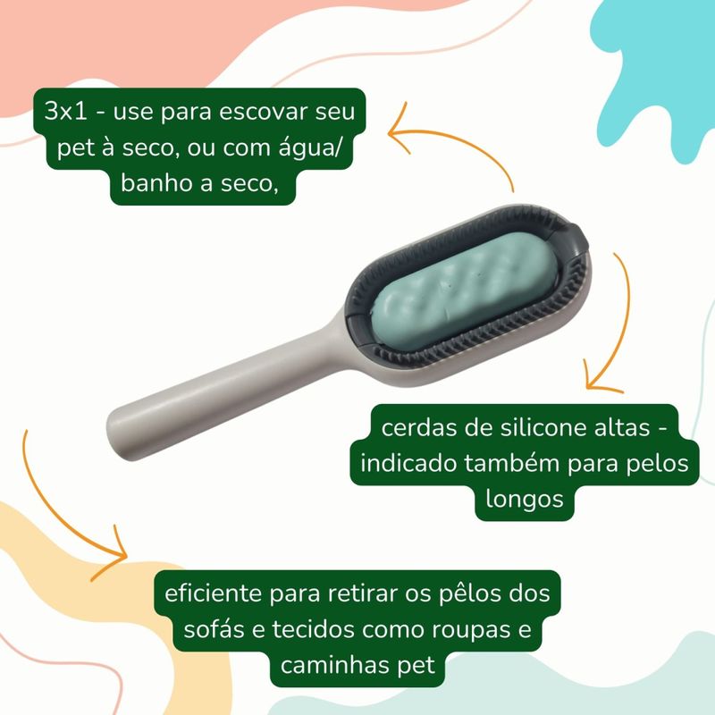 Kit Exclusivo Dr. Dog: Escova pet Tira Pelos + Banho a seco para cachorro 500ml limpa patinhas! A Dr. Dog traz com exclusividade, esta nova escova de silicone com reservatório de água para manter a escovação dos pelos dos seus pets de forma ainda mais simples e de fácil manutenção. Suas cerdas de 0,4cm, são eficientes tanto para pelos longos quanto curtos - ideal para retirar nós e poeira do dia a dia. além disso, pode ser manuseado dos 2 lados: - sem água - use para retirar pelos do sofá, da caminha pet e de roupas, que sabemos que ficam cheios de pelos; - ou, enchendo cerca de 20ml de água ou banho a seco no tanque, você promove uma escovação que ajuda a eliminar a poeira do dia a dia, com uma massagem suave e deixando seu pet cheiroso. Simples, não é? E neste Kit exclusivo, você ainda leva o banho a seco, para ser usado no reservatório da escova! Demais, né? => por que o banho a seco Dr. Dog é tão prático: Banho a seco higienizador para cães e gatos e também filhotes. Higiene sem água - Pelos sedosos e bem tratados - Cheirinhos inspirados em perfumaria fina e de longa duração. Perfume inspirado em CK One, um dos mais vendidos do mundo. Ideal para limpeza rápida, principalmente depois das caminhadas na rua (limpeza das patinhas), viagens e até depois do "número 2" =D e entre um banho e outro! =) Garanta agora e cuide do bem estar do seu pet! Use Dr. Dog! Há 9 anos, desenvolvendo soluções e produtos com foco no bem estar de cães e gatos de peles sensíveis.
