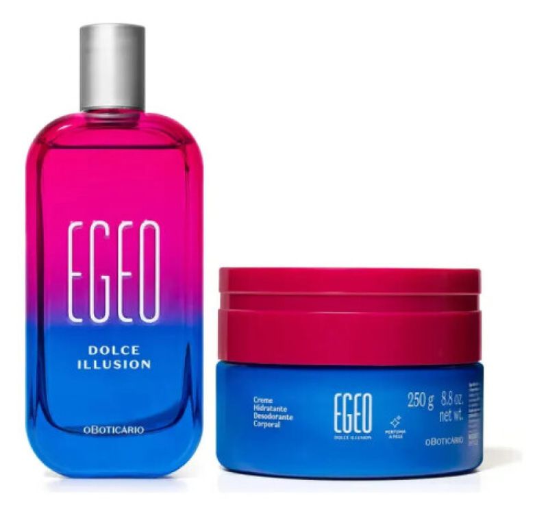 A colônia Egeo Dolce Illusion traz uma explosão de aromas doces e frutados, com notas que encantam e permanecem na pele por horas. Ideal para quem busca um perfume marcante, que transmite feminilidade e charme em todas as ocasiões. Hidratação Intensa e Toque Aveludado O hidratante corporal O Boticário, que acompanha a colônia, oferece uma fórmula rica e leve, que nutre profundamente a pele, deixando-a macia, perfumada e com sensação de conforto durante todo o dia. Benefícios do Combo Egeo Dolce Illusion Perfume e hidratação em um só kit: praticidade para cuidar da pele e perfumar-se com um só produto. Fragrância doce e sofisticada: perfeita para o dia a dia ou momentos especiais. Hidratação prolongada: pele suave, nutrida e delicadamente perfumada. Produto oficial O Boticário: qualidade e confiança que você merece. Por que Escolher o Combo Egeo Dolce Illusion? Se você quer realçar sua beleza e deixar uma impressão inesquecível, este combo é a escolha ideal. A união da colônia com o hidratante potencializa a fixação da fragrância e proporciona uma experiência sensorial completa. Garanta já seu Combo Egeo Dolce Illusion Colônia + Hidratante O Boticário e sinta o poder de uma combinação que traz elegância, cuidado e um toque irresistível de doçura para sua pele!