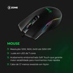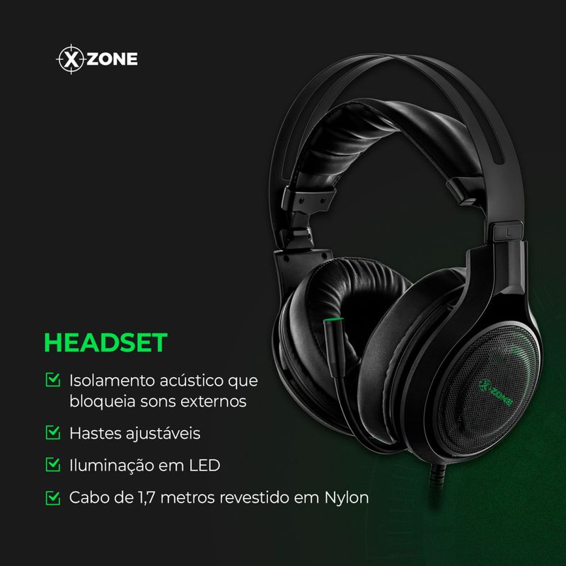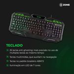 O Combo Teclado, Mouse, Mousepad e Headset da XZONE possui conexão USB Plug & Play, design ergonômico e Mouse e Headset com cabo em nylon de 1,7m. Sua iluminação em LED com 7 cores oferece uma experiência incrível e as 26 teclas anti-ghosting garantem o total funcionamento do teclado no uso de múltiplas teclas ao mesmo tempo. Acompanha o Headset Gamer com luz LED, hastes ajustáveis, isolamento acústico e microfone flexível. Seu mouse possui 4 níveis de ajuste de DPI para mais definição e precisão com resolução de 1200/1600/2400/ até 3200, acabamento emborrachado Soft Touch para mais estabilidade e aderência e um mousepad com borda costurada e base emborrachada antiderrapante.