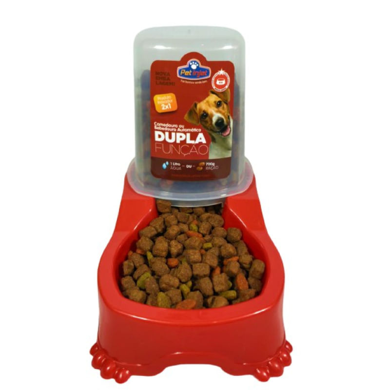 Comedouro ou Bebedouro Automático Dupla Função Cães E Gatos Vermelho - Pet Injet