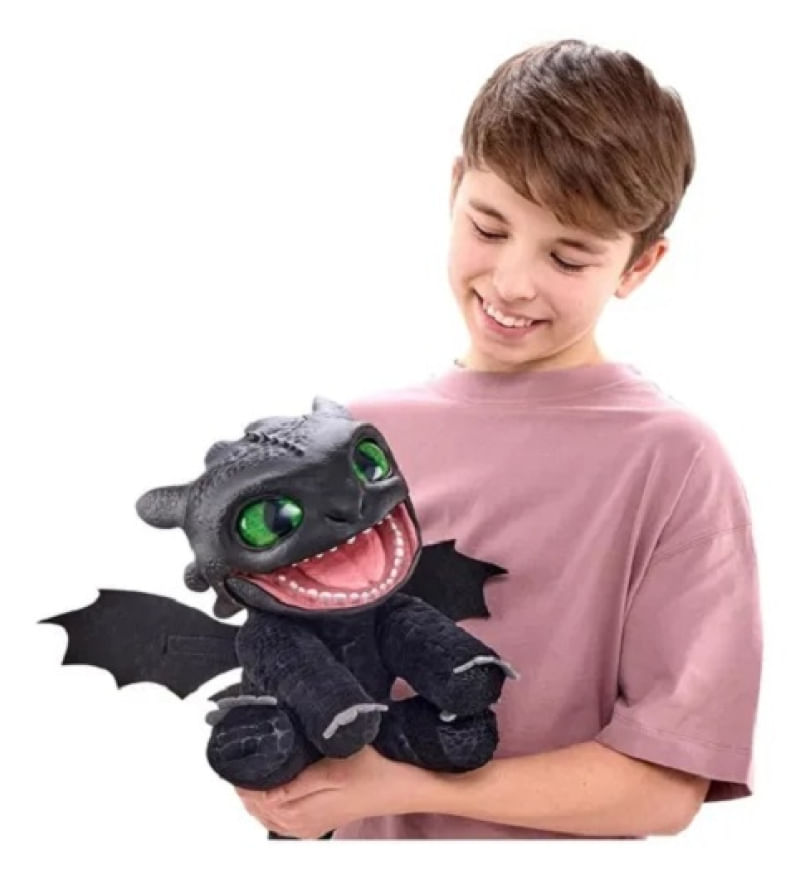 Como Treinar Seu Dragão Pelucia Banguela Interativa Animatrônica Real FX C/50 sons e reações - Fumaça e Luzes - Sunny Apresentamos a Pelúcia Premium Interativa Banguela, inspirada no icônico dragão do filme "Como Treinar Seu Dragão". Com um design criativo e detalhes encantadores, essa pelúcia é perfeita para as crianças que desejam embarcar em uma nova aventura. Seu tamanho médio de 39 cm de largura e 25 cm de altura a tornam ideal para abraços aconchegantes.Feita com material de pelúcia hipoalergênico e enchimento de poliéster, a Pelúcia Banguela é suave ao toque e segura para as crianças a partir de 3 anos. Equipado com luzes, sons e movimento, este dragão traz uma experiência interativa surpreendente aos momentos de brincadeira, estimulando a imaginação e a criatividade dos pequenos.Possui 50É uma excelente opção de presente para aniversário ou qualquer ocasião especial. É fácil de levar para qualquer lugar, seja para uma visita à casa de amigos ou durante viagens em família. Cada Banguela é uma chance de criar memórias inesquecíveis e incentivar o desenvolvimento lúdico dos pequenos. Idade acima de 6 anos Contem 1 pelucia banguela Tamanho da embalagem 35 x 25x 25 cm Fabricante Sunny