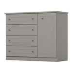 Cômoda 1 Porta 4 Gavetas Amy Casa 812 CinzaEsse produto e inspirado na decoracao escandinava, aconchegante e encantador, capaz de adequar o tradicional com o contemporaneo, excelente para modernizar seu ambiente, podendo ser usado para quartos adultos, juvenil e infantil. Nas gavetas possuem desenhos de usinagem em baixo relevo, gavetas com corredicas telescopicas asseguram um fechamento suave, puxadores ABS na cor bronze. Deixando qualquer ambiente moderno e clean, inovando sua forma de decorar seus espacos.CARACTERISTICAS: Estilo: Moderno Linha ou Colecao: Amy Ambiente Principal: Quarto Marca: CASA 812 Itens Inclusos: 1 Comoda Amy e Instrucao de Montagem MONTAGEM: Complexidade de Montagem: Alta: Deve ser montado por um montador especializado. Montagem Flex: Nao INFORMACOES RELEVANTES: Nao oferecemos servico de montagem. O produto e entregue desmontado, com kit de ferragens e manual de montagem inclusos. A contratacao de montador e de responsabilidade do cliente. Recomendacoes de Uso, Manutencoes e Limpeza: Para limpeza de seu movel, use uma flanela limpa e seca. Nao utilize produtos quimicos que possam danificar o produto As imagens sao meramente ilustrativas. As cores podem sofrer alteracoes devido a luminosidade, monitor e a percepcao do usuario Desmontagens, subir escadas, elevadores ou transporte por guincho para apartamentos, e suas despesas sao a cargo do cliente Eletros, Eletronicos e decoracoes nao acompanham o produto Peso Suportado: Os pesos suportados pelo produto devem ser distribuidos uniformemente no produto Para garantir a qualidade do produto, e imprescindivel realizar a conferencia no momento da entrega e, se houver qualquer tipo de divergencia, e essencial contatar imediatamente a loja Nossa garantia e contra defeitos de fabricacao, a qual tem um prazo de 3 meses contados a partir da data de entrega do produto. Nossa garantia NAO cobre defeitos por uso inadequado, abusivo ou falta de cuidados com o produto ACABAMENTOS: Cor Branco HP: Pintura UV Texturizada Fosco Cor Cinza: Pintura UV Texturizada Fosco ESPECIFICACOES TECNICAS: Medidas Montado (A x L x P): 101 x 126,5 x 51 Cm Peso Montado: 56 Kg Cor Interna: Na versao Branco HP e Trama Branco e na versao Cinza e Trama Material do Fundo: MDF Possui Ganchos: Nao Possui Iluminacao Led: Nao Possui porta Objetos: Nao Qtd. Portas: 1 Und. Tipo Porta: Bater Material da Porta: MDF Material da Dobradica: Metalica Material do Puxador Porta: ABS Qtd. Gavetas: 4 Und. Material da Gaveta: MDF Material da Corredica: Telescopica Material do Puxador Gaveta: ABS Peso Maximo por Gaveta: 3 Kg Possui Organizador de Gaveta: Nao Qtd. Prateleiras: 2 Und Material da Prateleira: MDP Peso Maximo por Prateleira: 8 Kg Qtd. Pes: Nao Altura Pes/Rodapes: 7,3 Cm Possui Espelho: Nao Possui Vidro: Nao Produto Suporte ate (Kg): 36 Kg Material Principal: MDP Possui Rodizios: Nao Gaveta com Chave: Nao Possui Nichos: Nao