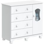 Cômoda 1 Porta 4 Gavetas Luna - Moveis Peroba Branco BrilhoA Cômoda Luna 1 Porta é um produto 100% MDF e possui pintura atóxica. Sua estrutura é fabricada em chapa de 12 mm, sendo o seu tampo em chapa de 15 mm. Os pés são injetados em plástico de alta resistência. Possui puxadores plásticos, cabideiro metálico e corrediças apoiadas metálicas. Sua porta possui detalhe com PETG cristal. Acompanha dois modelos de rodapés que podem ser definidos no momento da montagem.MedidasAltura: 88,0 cmLargura: 95,3 cmProfundidade: 42,3 cmMaterial PrincipalMDFMaterial dos FundosHDFAcabamento PrincipalVerniz UVLimpeza e ConservaçãoPara limpeza utilizar somente pano limpo e macio, ligeiramente umedecido em água (apenas o bastante para remover a poeira), seguido de um pano seco.Qtd de Prateleiras2Material da PrateleiraMDFEscala de Brilho da PrateleiraSemibrilhoPeso Máximo por Prateleira (kg)5Qtd de Gavetas4Acabamento da GavetaPintura UV e Fita de BordoTipo de Puxador da GavetaPerfil externoMaterial do Puxador da GavetaMDF revestidoNecessita de MontagemSimComplexidade da MontagemAlta: deve ser montado por um montador especializado.Observações:- Todos os produtos têm três (03) meses de garantia fornecida pelo fornecedor- As imagens são meramente ilustrativas, os objetos que ambientam as fotos não acompanham o produto.- Pode haver alguma diferença de tonalidade entre a foto e o produto, devido ao tratamento de imagens e a calibração do monitor- A entrega é realizada por transportadora, não nos responsabilizamos, no ato da entrega por desmontagens, subir escadas/elevadores ou transporte por guincho para apartamentos- Eventuais despesas são de responsabilidade do cliente- Confira as dimensões dos volumes e certifique-se de que passará normalmente por supostos elevadores, portas, escadas ou corredores- Ao receber a mercadoria, verifique as condições da embalagem, caso haja alguma avaria, entre em contato com nosso SAC- Nossa empresa não se responsabiliza pela montagem dos produtos, mas todos os produtos possuem manual de montagem. Recomendamos que a montagem seja feita por profissional de sua confiança.