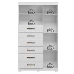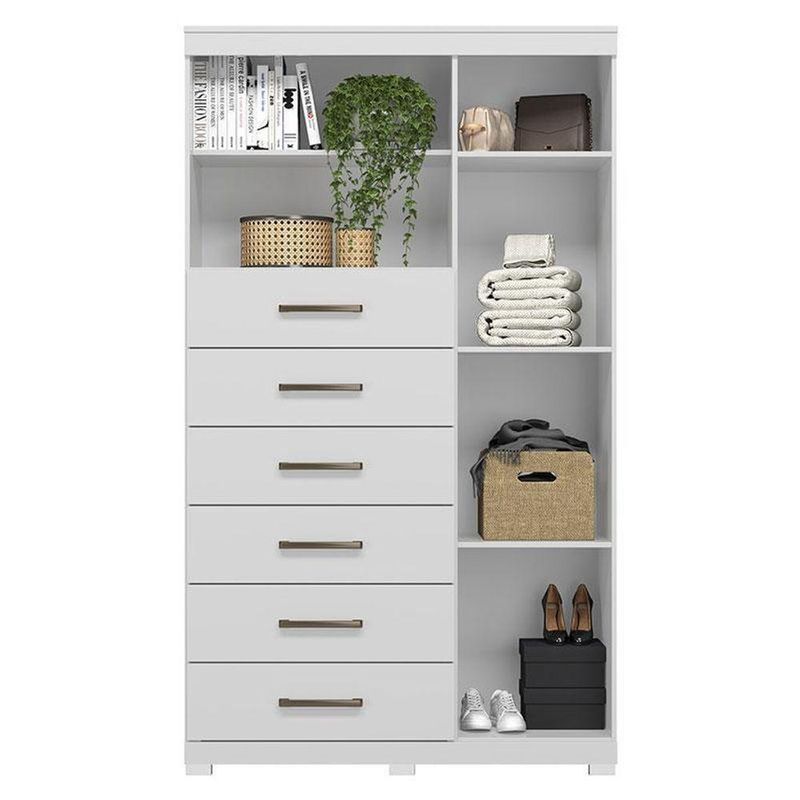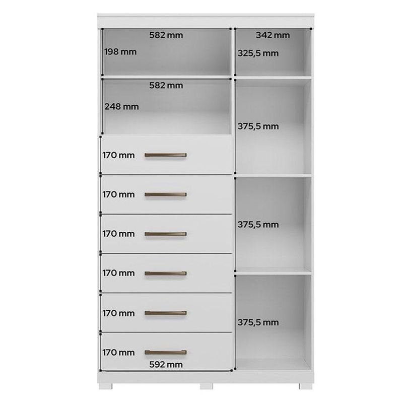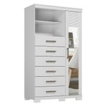 Comoda 1 Porta 6 Gavetas Marabá Com Espelho E Pés Branco Brilho - Santos AndiráComoda 1 porta 6 gavetas Marabá com espelho e pés Branco Brilho - Santos AndiráComoda 1 porta 6 gavetas Marabá com espelho e pés Branco: A Multi Cômoda Marabá é um coringa para a casa: pode ficar na cozinha ou quarto e guardar muitos itens graças às seis gavetas, além de suas prateleiras e uma porta com compartimentos.Características técnicas:- Desenvolvido em MDP - Pintura em esmalte- 06 amplas gavetas com corrediças telescópicas - Puxadores em ABS - 01 porta com 03 prateleiras- 01 ampla prateleira externaDimensões:Altura: 168,5 cmLargura: 96,2 cmProfundidade: 40 cmInformações importantes:* Não acompanha decorações e acessórios* Nossas cargas possuem seguro, portanto, no ato da entrega, confira a quantidade de volumes recebida, e também o estado da embalagem. Se houver qualquer inconsistência, não assine o comprovante de entrega;* O armazenamento do produto no endereço de entrega é de responsabilidade do comprador. Evite apoiar o produto na vertical, bem como evite áreas que deixem o produto exposto a chuva ou umidade excessiva;* Pequenas variações de tonalidade são possíveis, em razão da diferença de resolução da tela onde o anúncio está sendo visualizado. Se notar diferença expressiva, comunicar a empresa antes de efetuar a montagem;* O serviço de entrega contratado contempla a entrega até a primeira área coberta ou portaria, não sendo coberto o ato de subir escadas/elevadores ou adentrar nas residências;* Não nos responsabilizamos pela montagem, desmontagem ou instalação do produto. NA