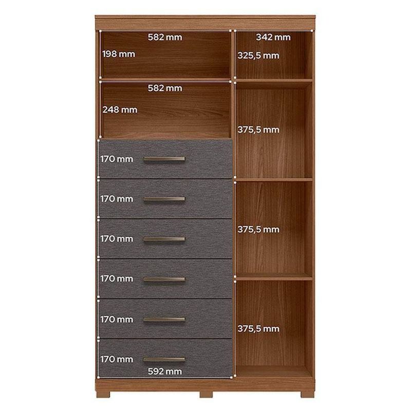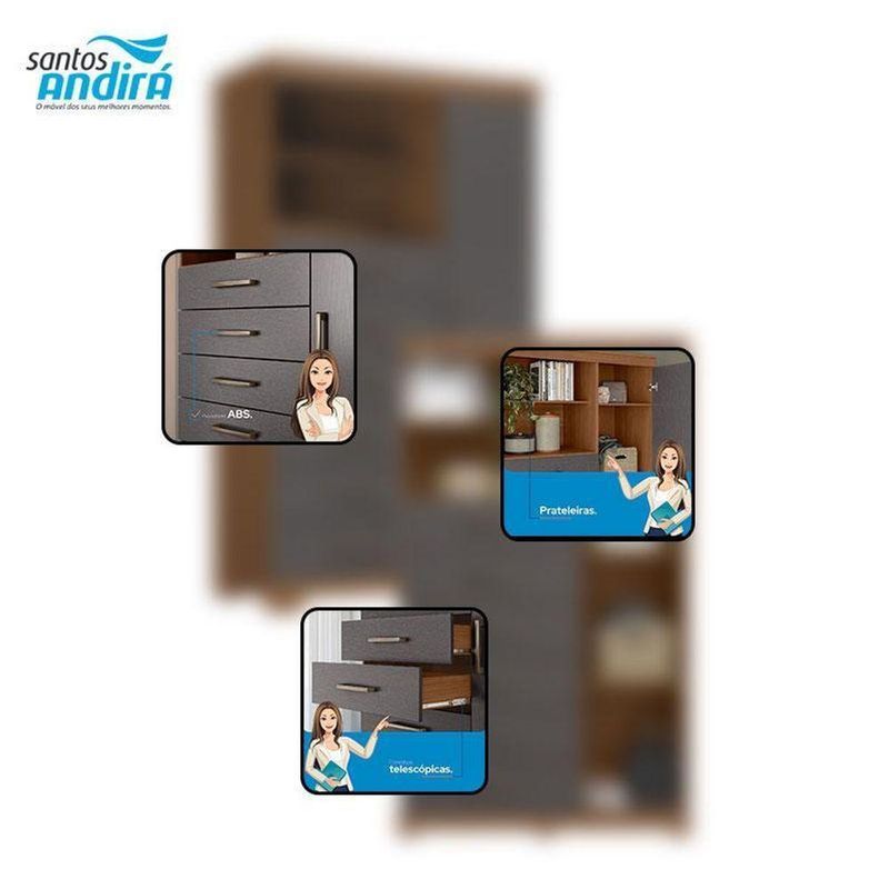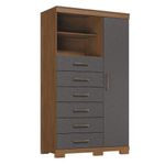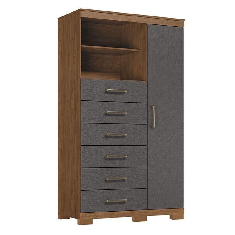 Comoda 1 Porta 6 Gavetas Marabá Com Pés Jatobá Grafite Acetinado - Santos AndiráComoda 1 porta 6 gavetas Marabá com pés Jatobá Grafite Acetinado - Santos AndiráComoda 1 porta 6 gavetas Marabá com pés Jatobá Grafite: A Multi Cômoda Marabá é um coringa para a casa: pode ficar na cozinha ou quarto e guardar muitos itens graças às seis gavetas, além de suas prateleiras e uma porta com compartimentos.Características técnicas:- Desenvolvido em MDP- Pintura em verniz fosco- 06 amplas gavetas com corrediças telescópicas- Puxadores em ABS- 01 porta com 03 prateleiras - 01 ampla prateleira externaDimensões:Altura: 168,5 cmLargura: 96,2 cmProfundidade: 40 cmInformações importantes:* Não acompanha decorações e acessórios* Nossas cargas possuem seguro, portanto, no ato da entrega, confira a quantidade de volumes recebida, e também o estado da embalagem. Se houver qualquer inconsistência, não assine o comprovante de entrega;* O armazenamento do produto no endereço de entrega é de responsabilidade do comprador. Evite apoiar o produto na vertical, bem como evite áreas que deixem o produto exposto a chuva ou umidade excessiva;* Pequenas variações de tonalidade são possíveis, em razão da diferença de resolução da tela onde o anúncio está sendo visualizado. Se notar diferença expressiva, comunicar a empresa antes de efetuar a montagem;* O serviço de entrega contratado contempla a entrega até a primeira área coberta ou portaria, não sendo coberto o ato de subir escadas/elevadores ou adentrar nas residências;* Não nos responsabilizamos pela montagem, desmontagem ou instalação do produto. NA