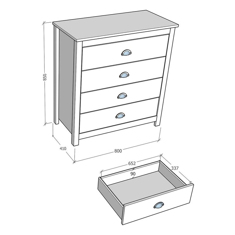 Cômoda 4 Gavetas Branco/Freijó Topázio Madeira Pinus - Finestra A Cômoda 4 Gavetas Topázio em Madeira Pinus combina funcionalidade e charme natural. Com design compacto, oferece amplo espaço para organizar roupas e objetos. Feita em madeira pinus, é resistente e durável, perfeita para compor qualquer ambiente com estilo e praticidade. Ideal para quem busca qualidade e elegância em um único móvel! Especificações Técnicas: Modelo: 9101BF Cor: Branco/Freijó Conteúdo da Embalagem: 1 Cômoda, manual de montagem e Kit Ferragem Não nos responsabilizamos pela montagem e instalação dos produtos. Garantia de fábrica: 90 dias contra defeito de fabricação. Tamanho montado: 86 cm x 80 cm x 41 cm - Altura x Largura x Profundidade Peso: 22 kg Matéria prima madeira maciça de pinus de reflorestamento; Pintura Acetinada Verniz PU e UV; Corrediças telescópicas; Puxadores metálicos em ouro envelhecido; Pés alongados em madeira; Peso máximo suportado pelas Gavetas 05kg distribuídos); Amplo espaço para armazenamento; Isolamento de peças com manta de polietileno expandido (Isomanta); Possui manual de montagem; Sistema de montagem simples e rápida. Recomendações de Uso, Manutenção e Limpeza: Seguir a ordem do manual de montagem, evitar batidas e contato com objetos cortantes, não deixe o móvel em locais muito úmidos; Limpar com pano levemente umedecido com água, seguido de pano seco, não utilizar produtos químicos ou abrasivos, evite incidência direta de luz solar; Algumas pinturas novas, embora atóxicas, podem apresentar odores. Para amenizá-los, mantenha o móvel em local arejado nos primeiros dias de uso. Informações importantes: • Fotos meramente ilustrativa. Os objetos que ambientam as fotos não acompanham o produto. • As cores do produto podem variar de acordo com o monitor, a iluminação do ambiente ou sua percepção visual. • A compra do produto não acompanha montagem/desmontagem. • Montagens, desmontagens e instalações são responsabilidades do cliente. Estes serviços não estão inclusos no valor do produto. Para evitar imprevistos na sua entrega, confira as dimensões do produto no momento da compra e certifique-se de que ele passará por elevadores, portas, escadas e corredores, já que nossa entrega não inclui a subida de lances de escada ou o içamento de produtos. • Verifique a complexidade antes de decidir montar sozinho, orientamos que este produto seja montado por um profissional de sua confiança, após a sua entrega. • Todas as instruções, manuais e peças necessárias para a montagem são fornecidos junto com o produto, não nos responsabilizamos pela instalação/montagem. • Fornecemos somente assistências, por defeitos de fábrica.