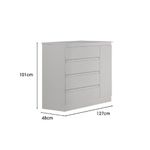 Cômoda 4 Gavetas e 1 Porta Valverde Móveis CanionQuer mais espaço para guardar as suas roupas? Conte com a Cômoda 045 para ter as peças organizadas, ficando mais fácil para achá-las. Com 4 gavetas e 1 porta, o móvel tem espaço de sobra para você acabar com a bagunça no seu quarto.Especificações Técnicas:- Marca: Móveis Valverde- Altura: 101 cm- Largura: 127 cm- Profundidade: 48 cm- Peso: 57,7 kg- Possui Sapateira: Sim- Possui Pés: Não- Escala de Brilho:Fosco- Necessita Montagem:Sim- Complexidade da Montagem:Média- Material da corrediça: Telescópica- Material da dobradiça: Metálica- Peso máximo que suporta: 45 kg- Material Principal: MDF- Revestimento:Pintura UV- Recomendações de Uso, Manutenção e Limpeza: Limpar com flanela limpa e seca. Não usar produtos abrasivos.Observações:- Não oferecemos de montagem, mas todos os produtos possuem manual com o passo a passo.- Recomendamos contratar um de sua preferência. - Pode existir alguma diferença de tonalidade entre a foto e o produto, devido ao tratamento de imagens e à calibração de cores do monitor.